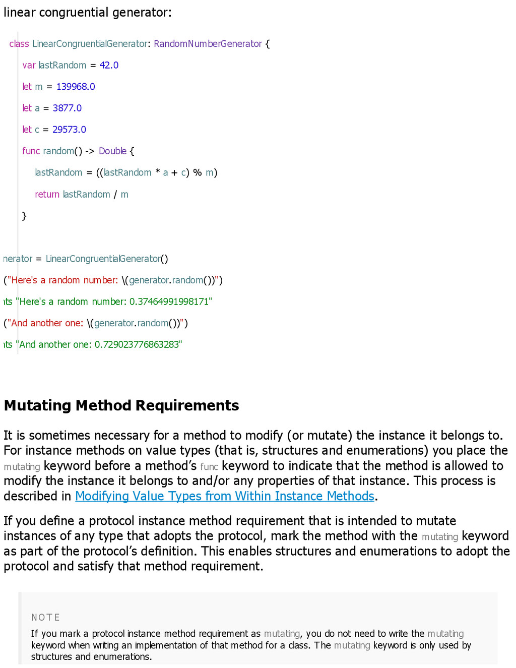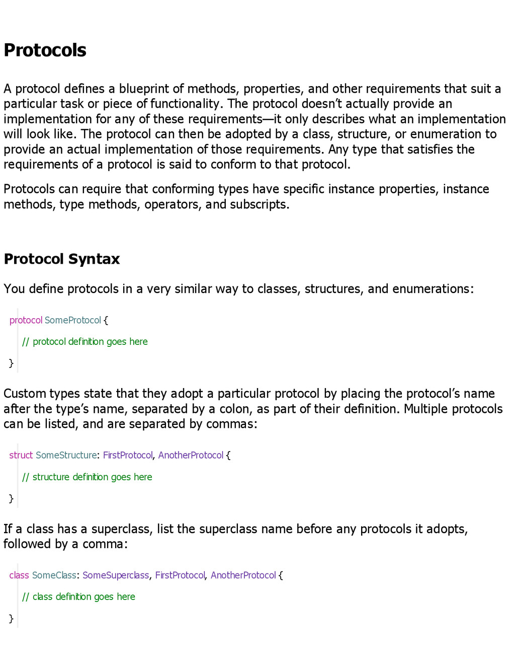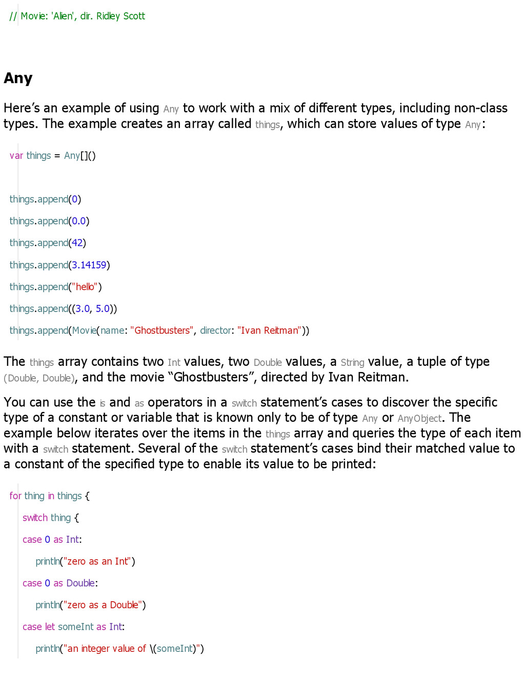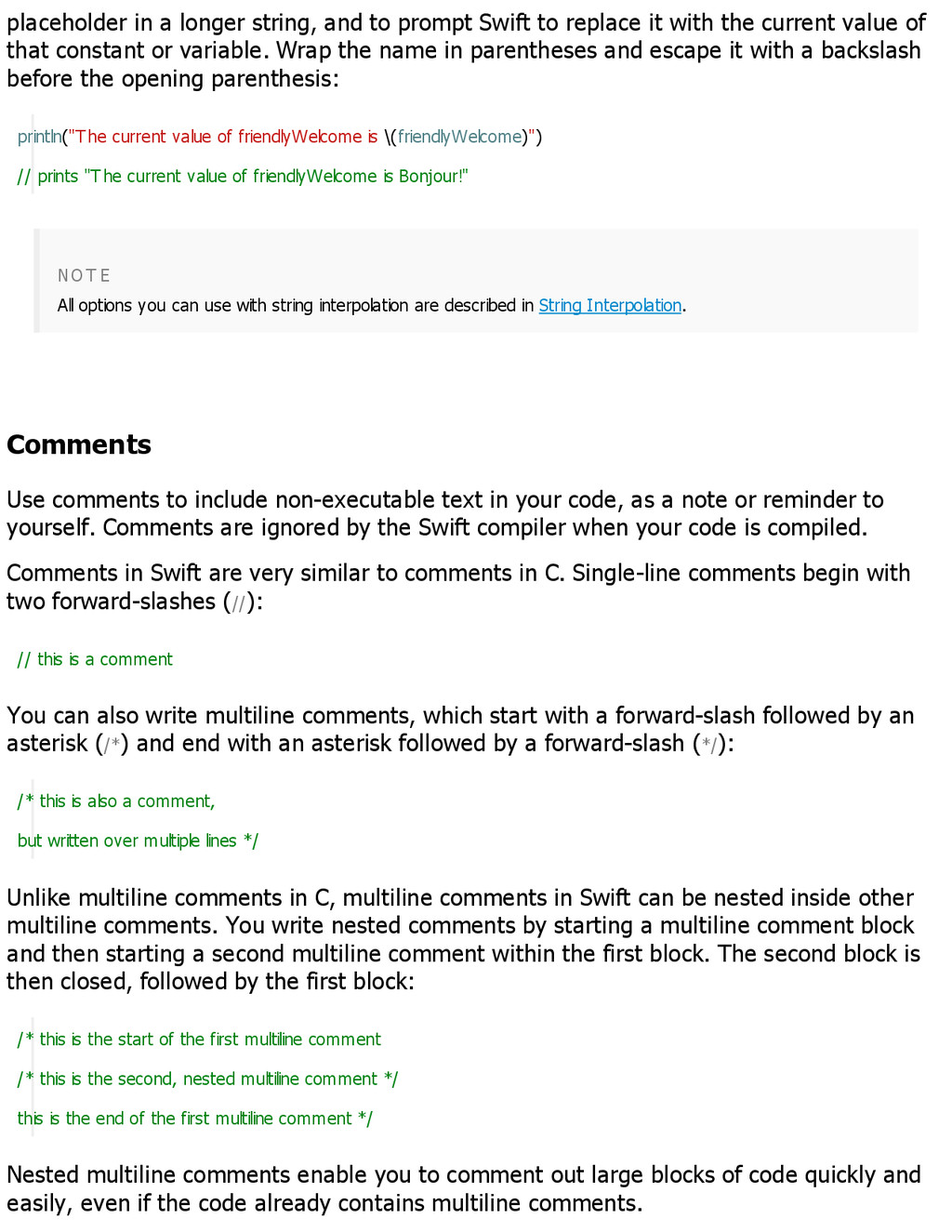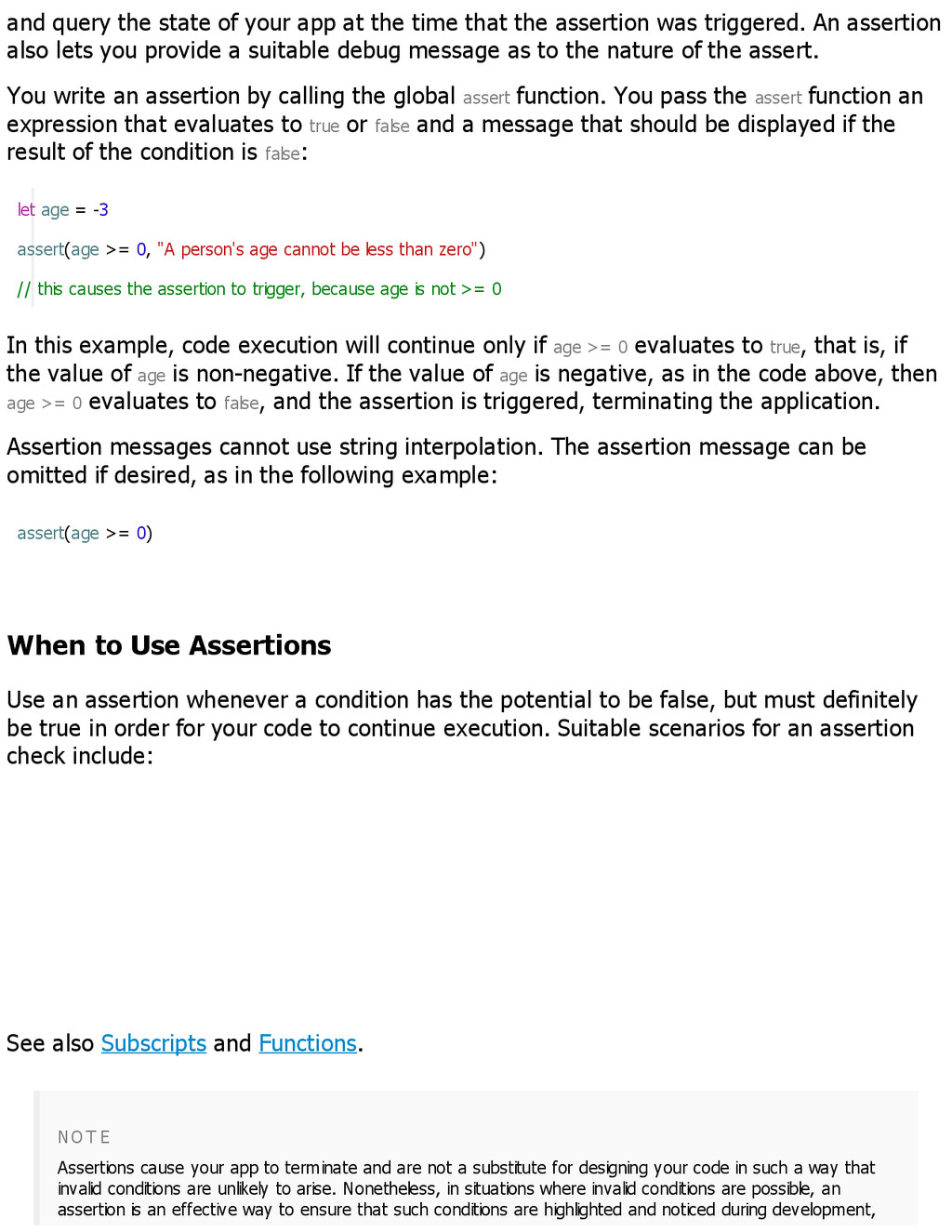 it will return a value must always do so. A function with a defined return type cannot allow control to fall out of the bottom of the function without returning a value, and attempting to do so will result in a compile-time error. Functions with Multiple Return Values You can use a tuple type as the return type for a function to return multiple values as part of one compound return value. The example below defines a function called count, which counts the number of vowels, consonants, and other characters in a string, based on the standard set of vowels and consonants used in American English: func count(string: String) -> (vowels: Int, consonants: Int, others: Int) { var vowels = 0, consonants = 0, others = 0 for character in string { switch String(character).lowercaseString { case "a", "e", "i", "o", "u": ++vowels case "b", "c", "d", "f", "g", "h", "j", "k", "l", "m", "n", "p", "q", "r", "s", "t", "v", "w", "x", "y", "z": ++consonants default: ++others } eturn (vowels, consonants, others) You can use this count function to count the characters in an arbitrary string, and to retrieve the counted totals as a tuple of three named Int values: let total = count("some arbitrary string!") println("\(total.vowels) vowels and \(total.consonants) consonants")