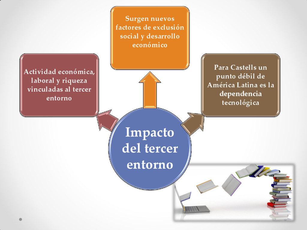 al tercer entorno Surgen nuevos factores de exclusión social y desarrollo económico Para Castells un punto débil de América Latina es la dependencia tecnológica