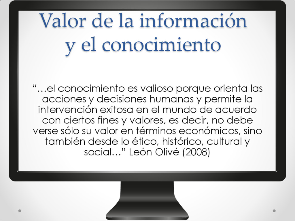 valioso porque orienta las acciones y decisiones humanas y permite la intervención exitosa en el mundo de acuerdo con ciertos fines y valores, es decir, no debe verse sólo su valor en términos económicos, sino también desde lo ético, histórico, cultural y social…” León Olivé (2008)
