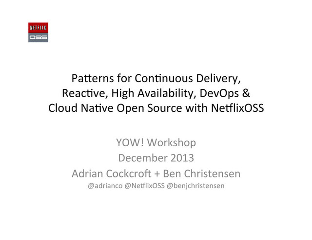 Ne9lixOSS makes it easier for everyone to become Cloud Na1ve Rethink deployments and turn things off to save money! h#p://neClix.github.com h#p://techblog.neClix.com h#p://slideshare.net/NeClix h#p://www.linkedin.com/in/adriancockcroN @adrianco @NeClixOSS @benjchristensen