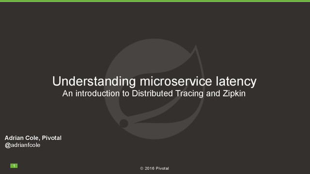 server. Grow into fanciness as you need it: sampling, streaming, etc Remember you are not alone! @adrianfcole #zipkin gitter.im/spring-cloud/spring-cloud-sleuth gitter.im/openzipkin/zipkin