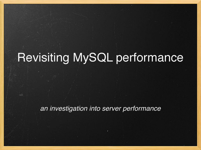 If you've added your indexes and you've redesigned your queries and you're still struggling with performance, you may need to delve a little deeper into MySQL's configuration and better understand your OS. This talk is not about tackling individual queries. Instead, it contains much broader system-level approaches to resolving performance issues.