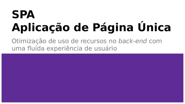 Nesta sessão vamos conversar sobre Arquitetura de Página única (Single-Page Application) para alto desempenho de sistemas e serviços que busca otimizar o uso de back-end e traz uma melhor experiência de uso flúido para o usuário.