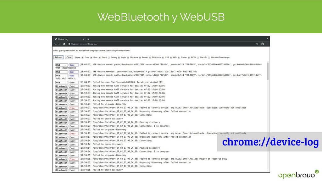 Un punto débil que tienen las aplicaciones web es la gestión de hardware especializado. Actualmente tenemos WebUSB y WebBluetooth que ofrecen un mecanismo multiplataforma para acceder a todo tipo de hardware. Pero esto no siempre ha sido así.