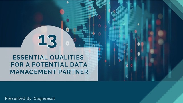 Today 90% of data is generated on a daily basis that needs to be managed properly. So, organizations are now opting for a potential data management partner. But, before choosing the data management partner, you need to look at some essential qualities of a data management partner. This presentation represents the 13 essential qualities of a potential partner: https://bit.ly/2b0YHx1