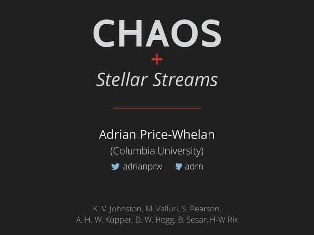 Do the known thin streams map the regular orbits? Is the MW potential more regular? 2. Accretion histories Measuring dynamical age / accretion time difficult if stream is chaotic 3. Formation of stellar halos Substructure smoothed out by chaos — less halo substructure in Gaia?