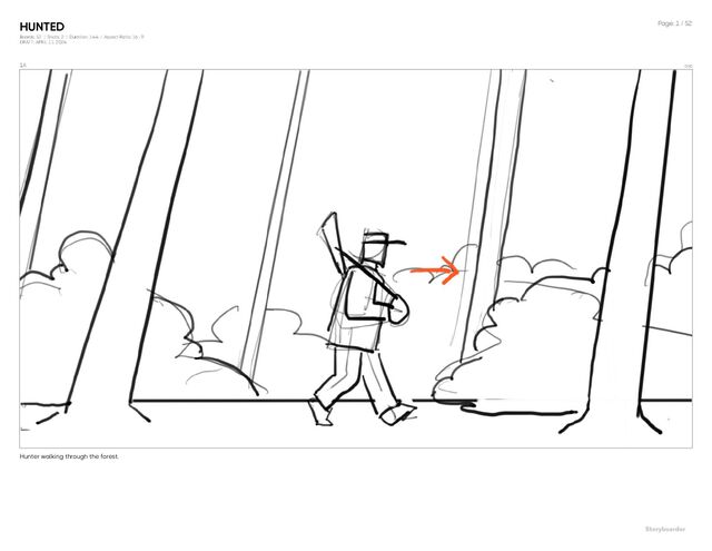 Aspect Ratio: 16 : 9 DRAFT: APRIL 11, 2024 Page: 1 / 52 1A 0:00 Hunter walking through the forest.