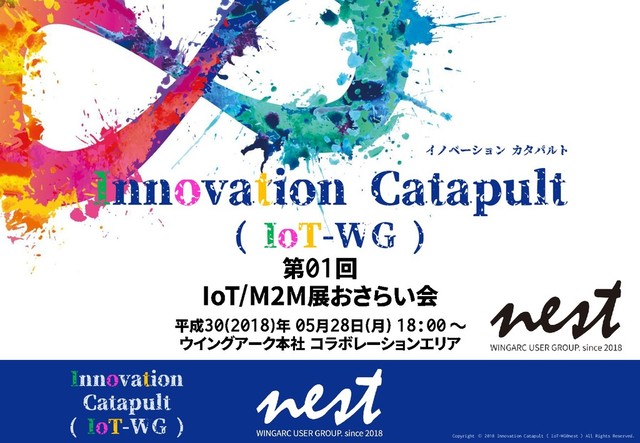 Innovation Catapult ( IoT-WG@nest ) 第01回 IoT・M2M展おさらい会 ( IDEA Fusion Vol.01 ) アイ・アイス株式会社 大野 広道 発表資料 グループ説明 当日用 アップロード版 平成30(2018)年05月28日(月)