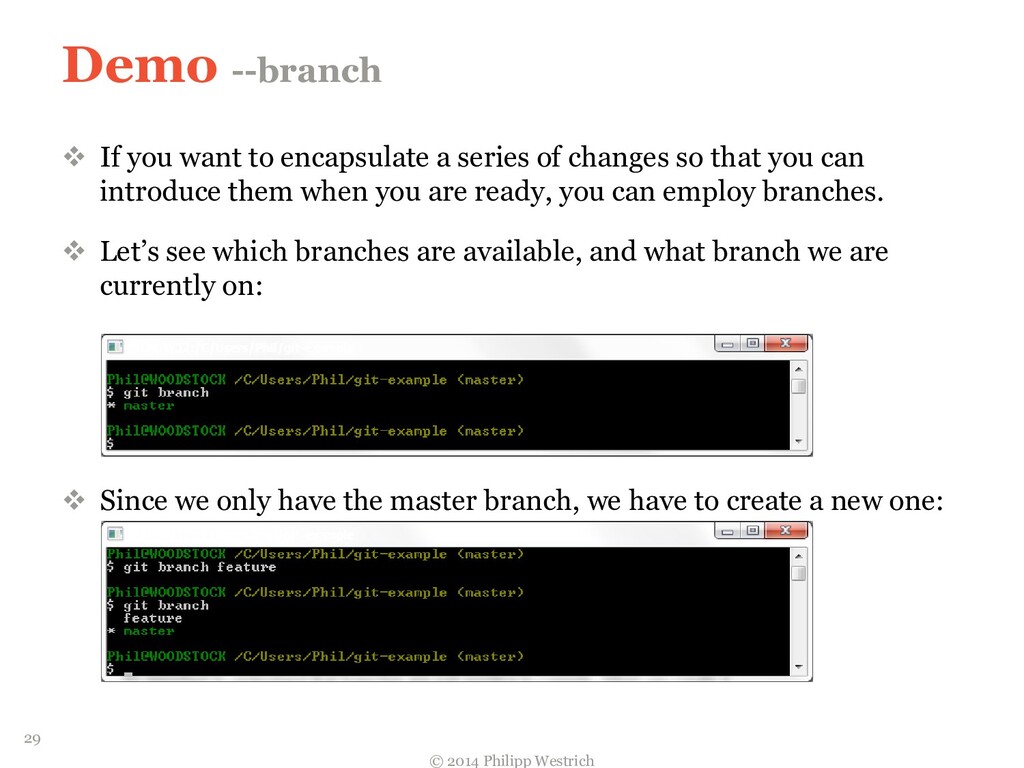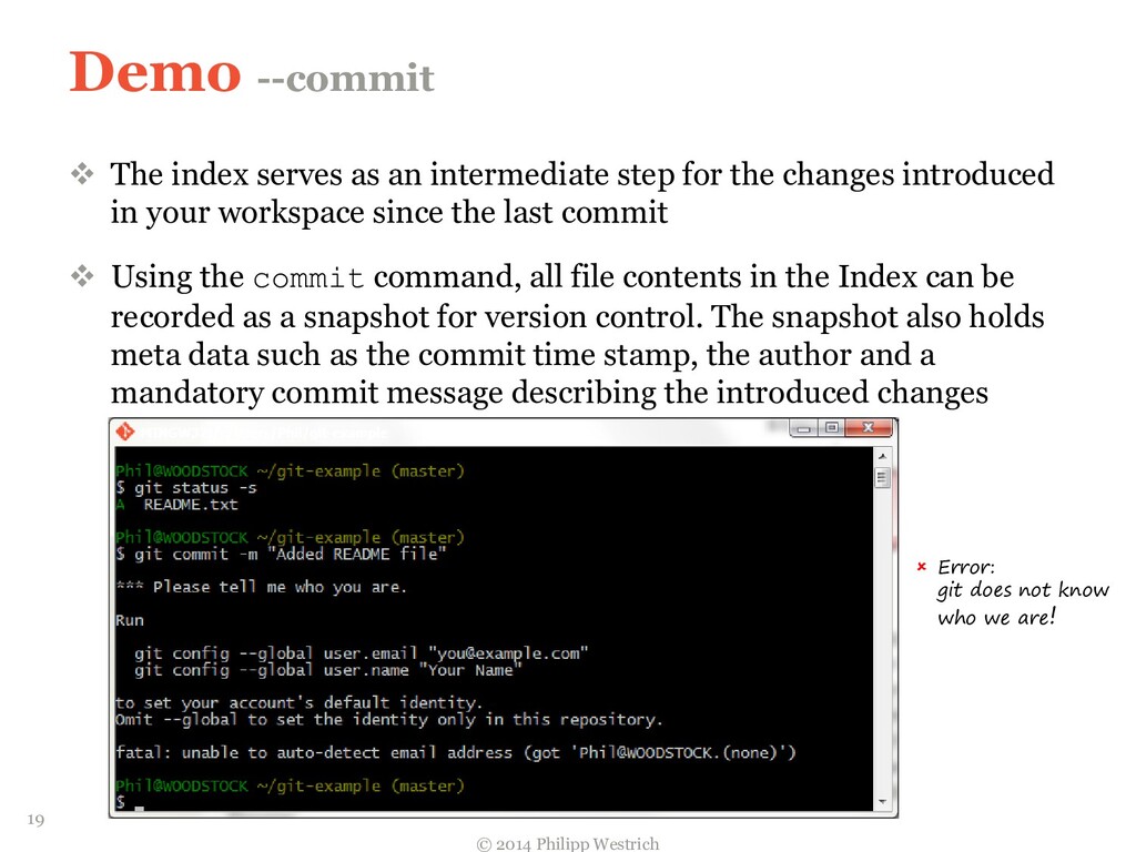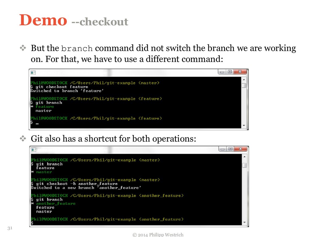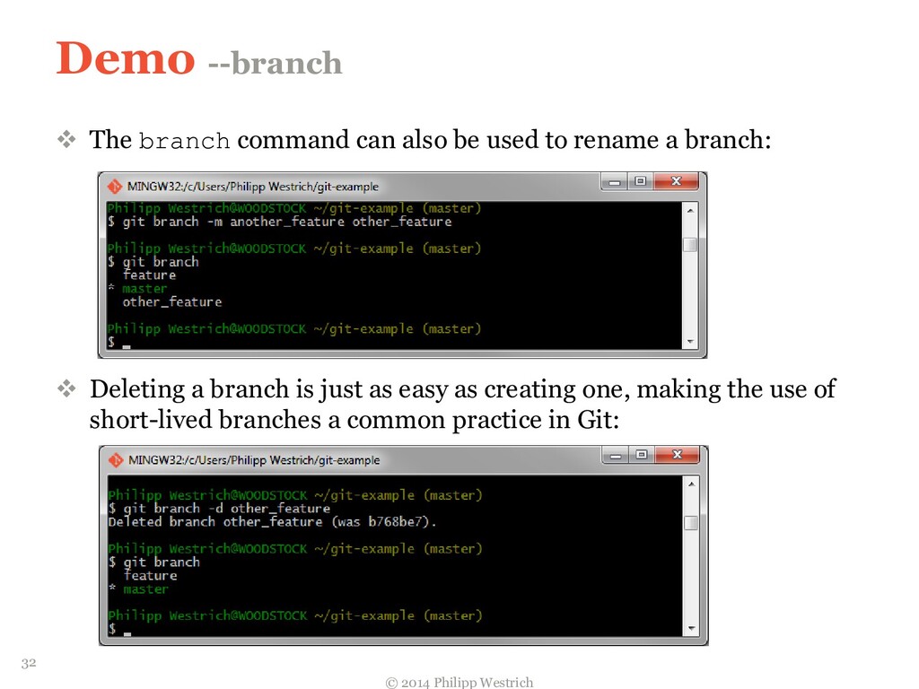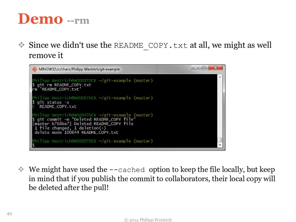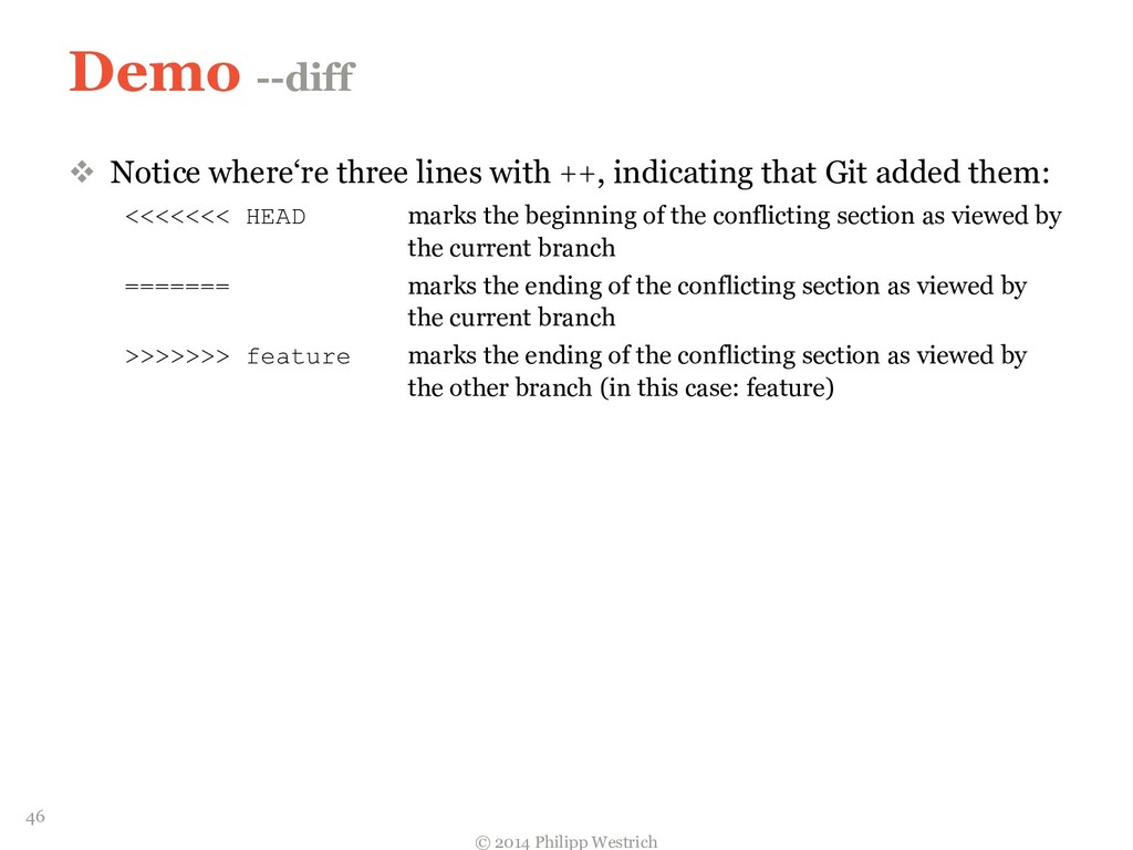 tree ffdbe3 … Added README file ffdbe3 100644 blob 0c0396 README.txt 0c0396 This is just a sample git project c5b185 tree 0c47dc parent e1de67 … Added README_COPY file 0c47dc 100644 blob 0c0396 README.txt 100644 blob 0c0396 README_COPY.txt 3db894 tree f3fc95 parent c5b185 … Changed README text 0c47dc 100644 blob 635cd9 README.txt 100644 blob 0c0396 README_COPY.txt 635cd9 This is just a simple example Git project = Local repository after merging! 36