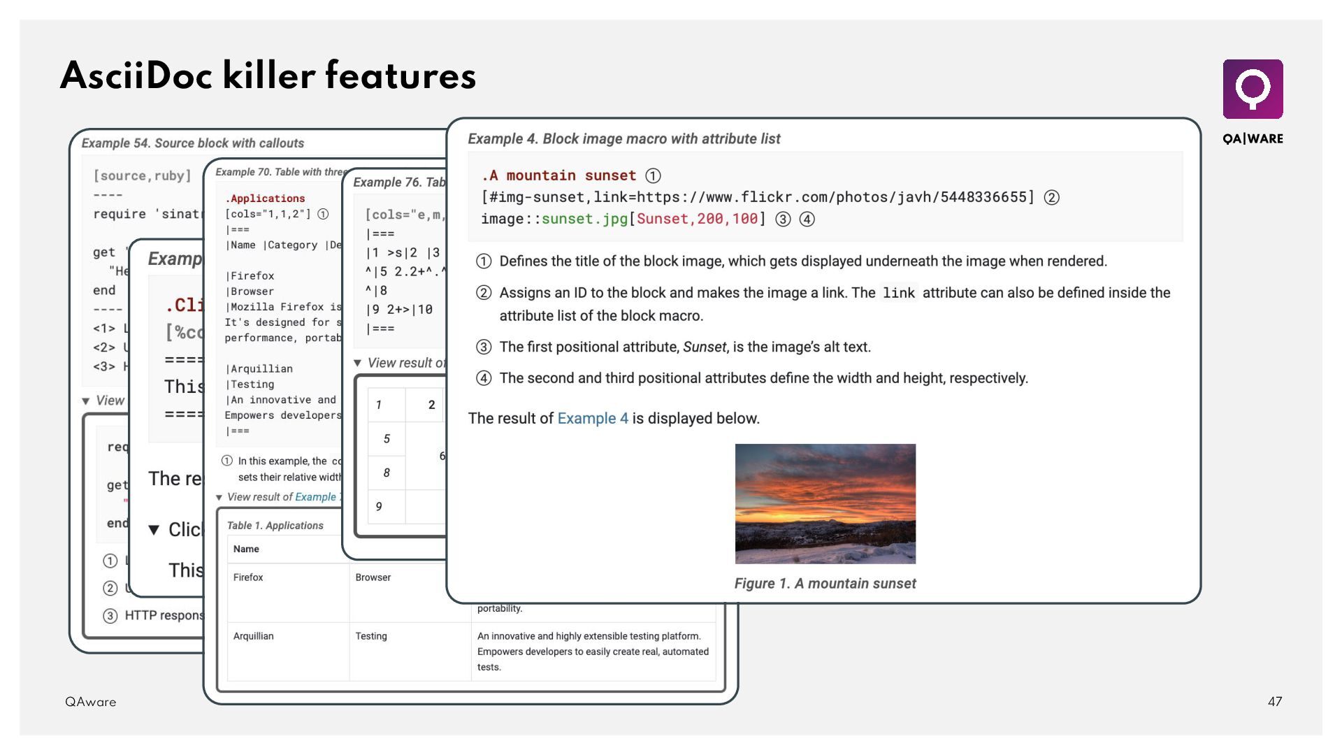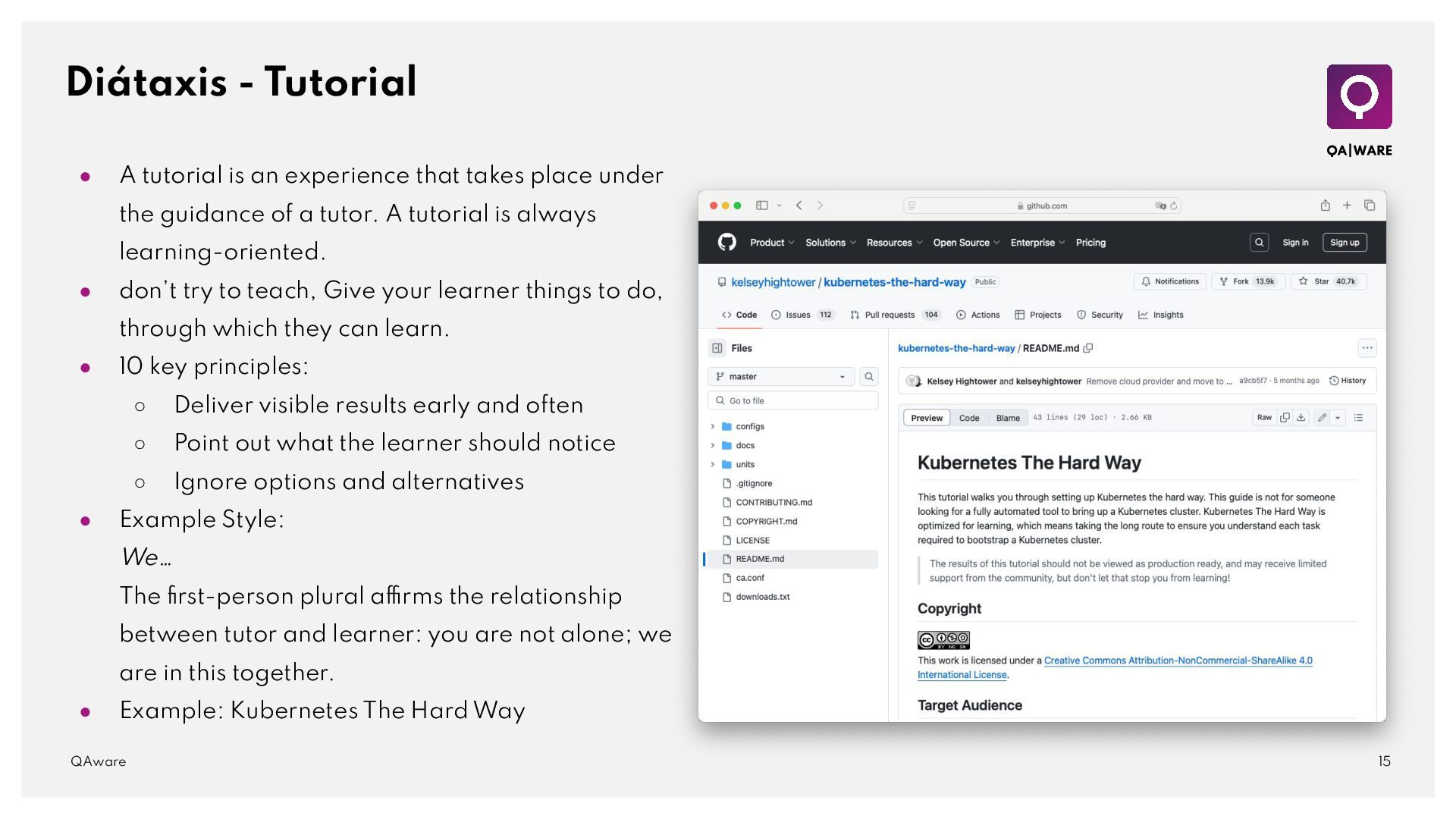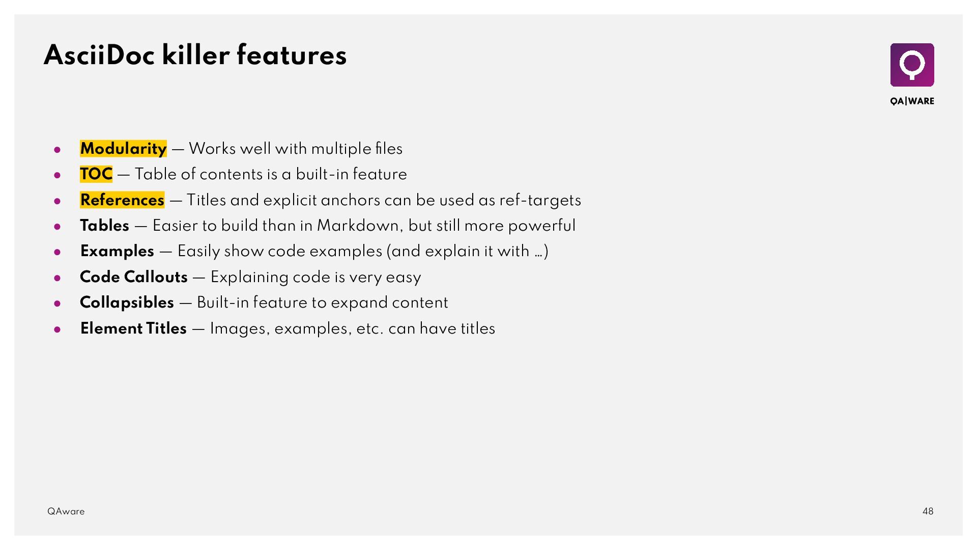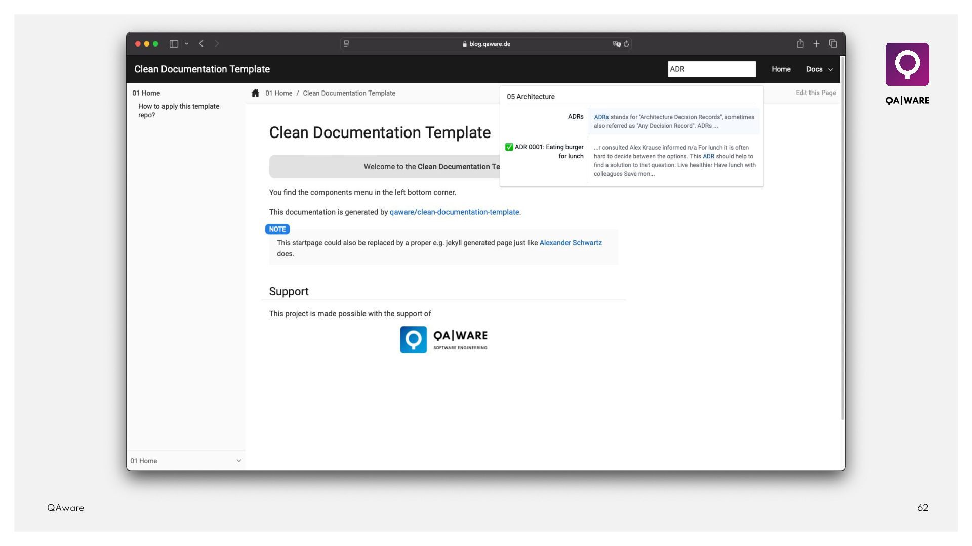 Im zweiten technischen Teil schauen wir uns an, wie man große Dokumentationen, die aus vielen Repositories bestehen, handhabbar macht, wie man gut durchsuchbare Dokumentationsseiten erstellt und wie man Linter benutzt, um einen guten Stil einzuhalten.