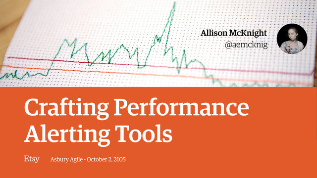 Etsy has recently developed new alerting tools to help discover and dig into performance regressions across the site. In this presentation, Allison McKnight, performance engineer at Etsy, covers we built these tools on top of existing technology, how we iterated on the context included in our alerts and developed tools to help us investigate regressions, and how these tools have changed the way that we collaborate with other teams to fix performance regressions.