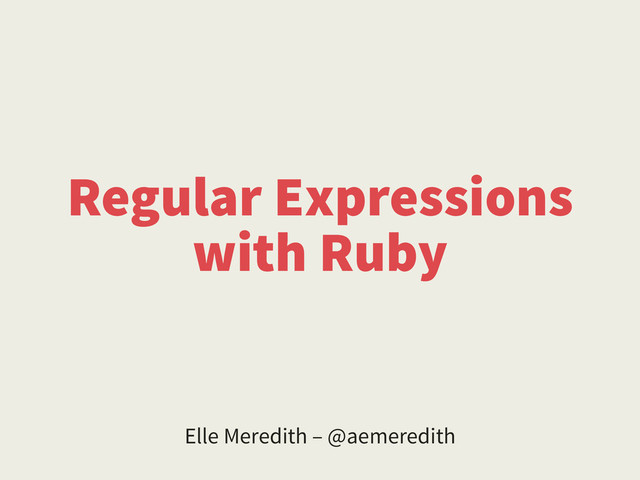 Regular Expressions with Ruby Elle Meredith – @aemeredith