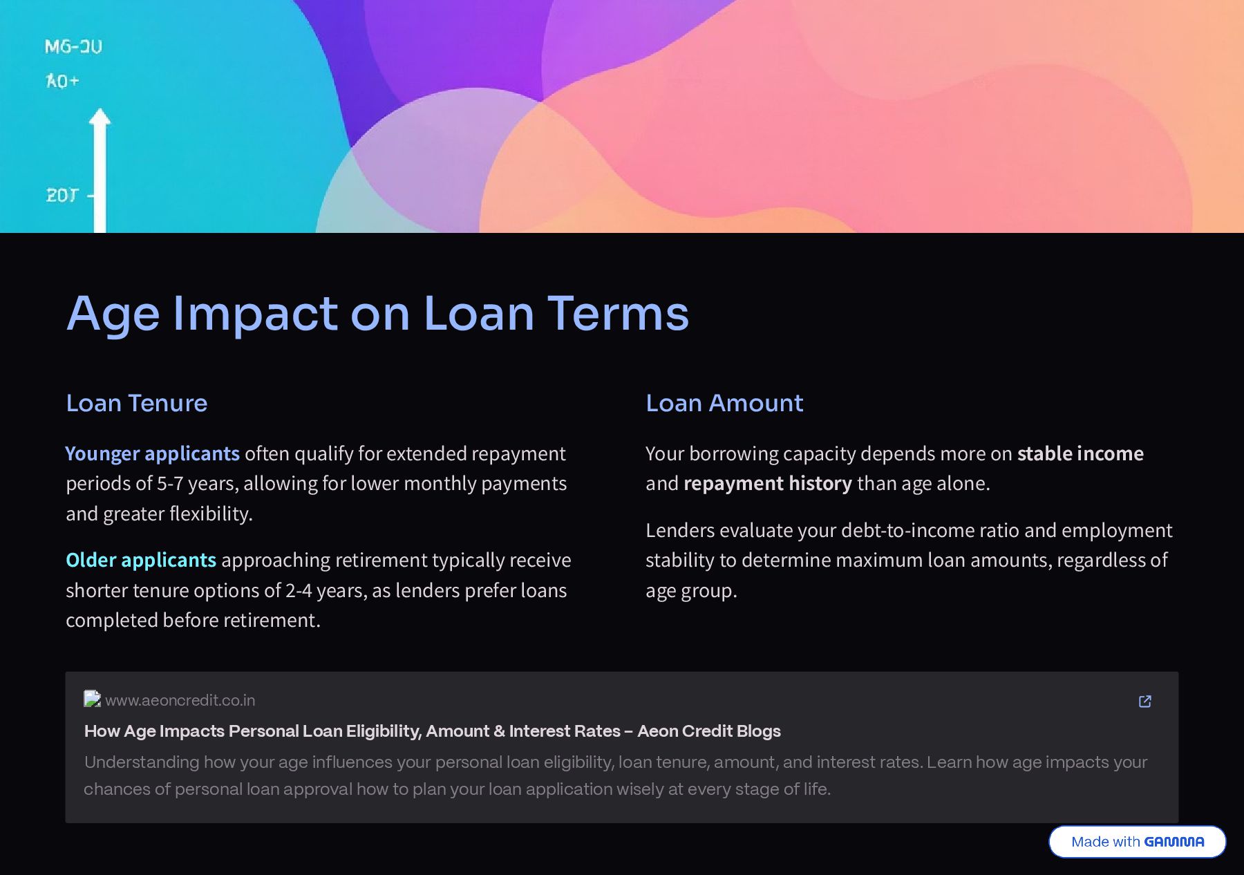 Read more: https://www.aeoncredit.co.in/blogs/how-does-age-affect-your-personal-loan-eligibility