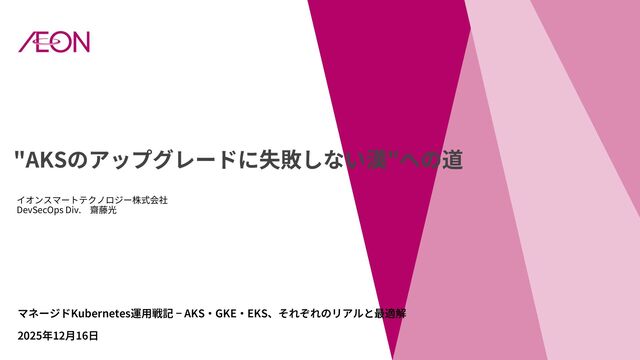 ファインディ株式会社イベント「マネージドKubernetes運用戦記 − AKS・GKE・EKS、それぞれのリアルと最適解」での登壇資料です。
