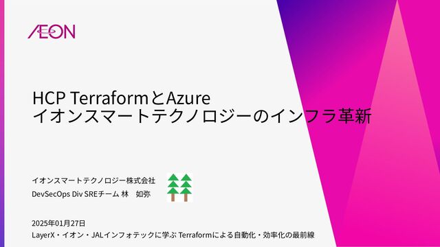 2025/01/27に行われた、LayerX・イオン・JALインフォテックに学ぶ Terraformによる自動化・効率化の最前線での発表資料です。 https://findy.connpass.com/event/341035/