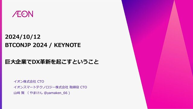 2024/10/12 BTCONJP 2024 / KEYNOTE 巨大企業でDX革新を起こすということ イオン株式会社 CTO イオンスマートテクノロジー株式会社 取締役