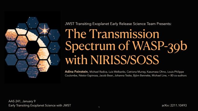 The results of a transit of the exoplanet WASP-39b with JWST NIRISS/SOSS. This work was part of the JWST Early Release Science Program (PI Batalha).