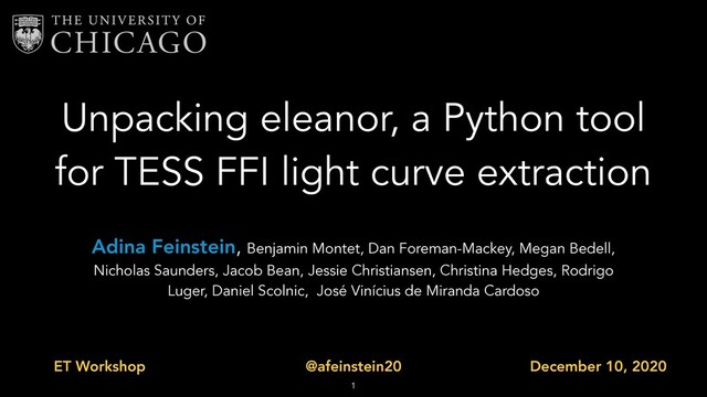 extraction Adina Feinstein, Benjamin Montet, Dan Foreman-Mackey, Megan Bedell, Nicholas Saunders, Jacob Bean, Jessie Christiansen, Christina Hedges, Rodrigo Luger, Daniel Scolnic, José Vinícius de Miranda Cardoso !1 December 10, 2020 ET Workshop @afeinstein20