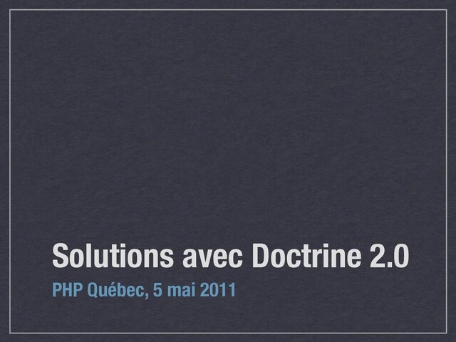 Solutions avec Doctrine 2.0 PHP Québec, 5 mai 2011