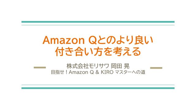 Amazon Qとのより良い 付き合い方を考える 株式会社モリサワ 岡田 晃 目指せ!Amazon Q & KIRO