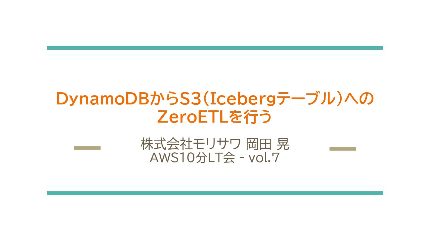 DynamoDBからS3(Icebergテーブル)への ZeroETLを行う 株式会社モリサワ 岡田 晃 AWS10分LT会 - vol.7