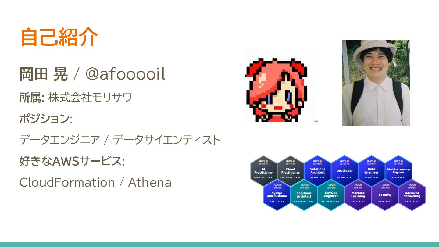 自己紹介 岡田 晃 / @afooooil 所属: 株式会社モリサワ ポジション: データエンジニア /