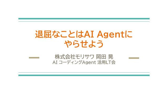退屈なことはAI Agentに やらせよう 株式会社モリサワ 岡田 晃 AI コーディングAgent 活用LT会