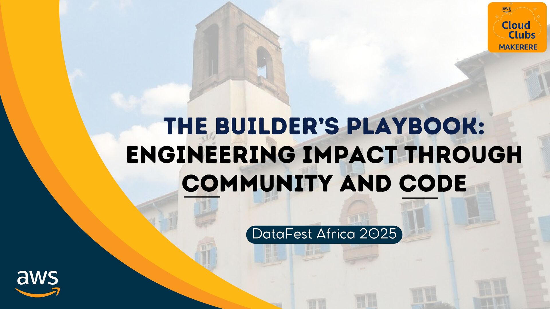 At DataFest Africa 2025, our breakout session as AWS Cloud Club Makerere University was a discussion about ๐ง๐ต๐ฒ ๐๐๐ถ๐น๐ฑ๐ฒ๐ฟโ๐ ๐ฃ๐น๐ฎ๐๐ฏ๐ผ๐ผ๐ธ: ๐๐ป๐ด๐ถ๐ป๐ฒ๐ฒ๐ฟ๐ถ๐ป๐ด ๐๐บ๐ฝ๐ฎ๐ฐ๐ ๐ง๐ต๐ฟ๐ผ๐๐ด๐ต ๐๐ผ๐บ๐บ๐๐ป๐ถ๐๐ ๐ฎ๐ป๐ฑ ๐๐ผ๐ฑ๐ฒ.