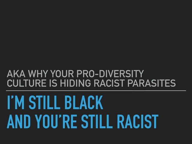 Abstract: Today every organization is pro-diversity. They exclaim it on their websites and list all the great things they do in their job descriptions. Which is good. Like, way better than it was. But, not many organizations are doing the hard work at increasing inclusion amongst their team members. Hard conversations are not being had. Changes are only superficial. It’s still uncomfortable for me in my black skin to exist in these majority white spaces because white folks are still uncomfortable with my black skin. In this talk we’re going to address these truths head on. I’ll share my own and other black developers experiences and we will walk through ways you can develop the empathy, patience and courage needed to be okay working beside a black person tomorrow. (This version does not include the speaker notes)