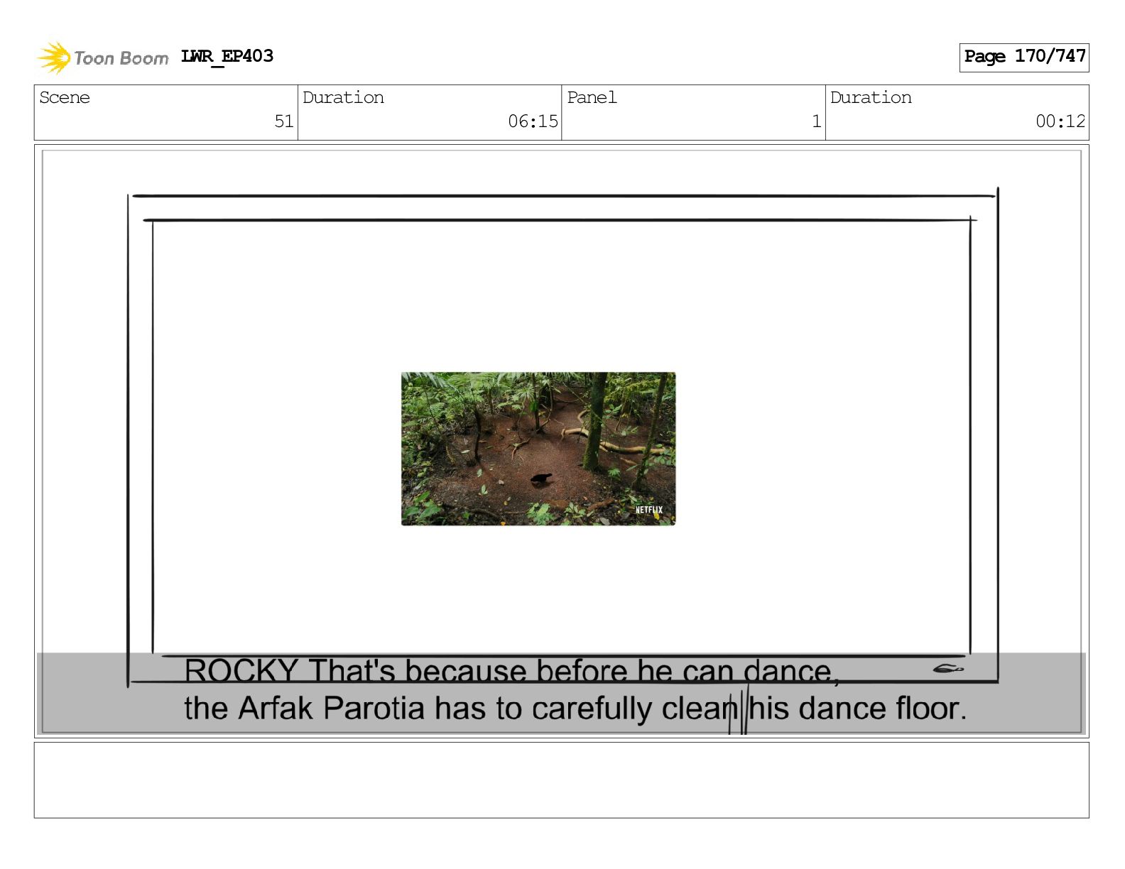 Scene 184 Duration 04:13 Panel 5 Duration 00:12 LWR_EP403 Page