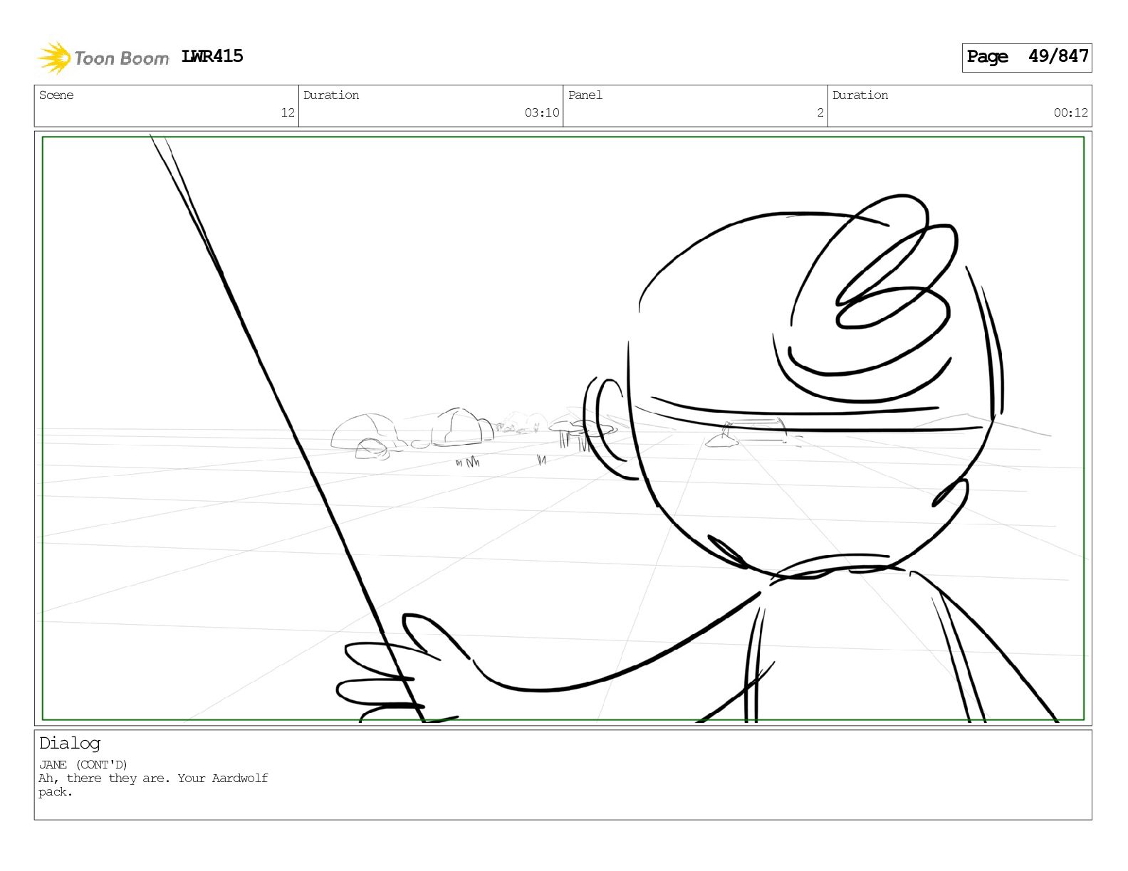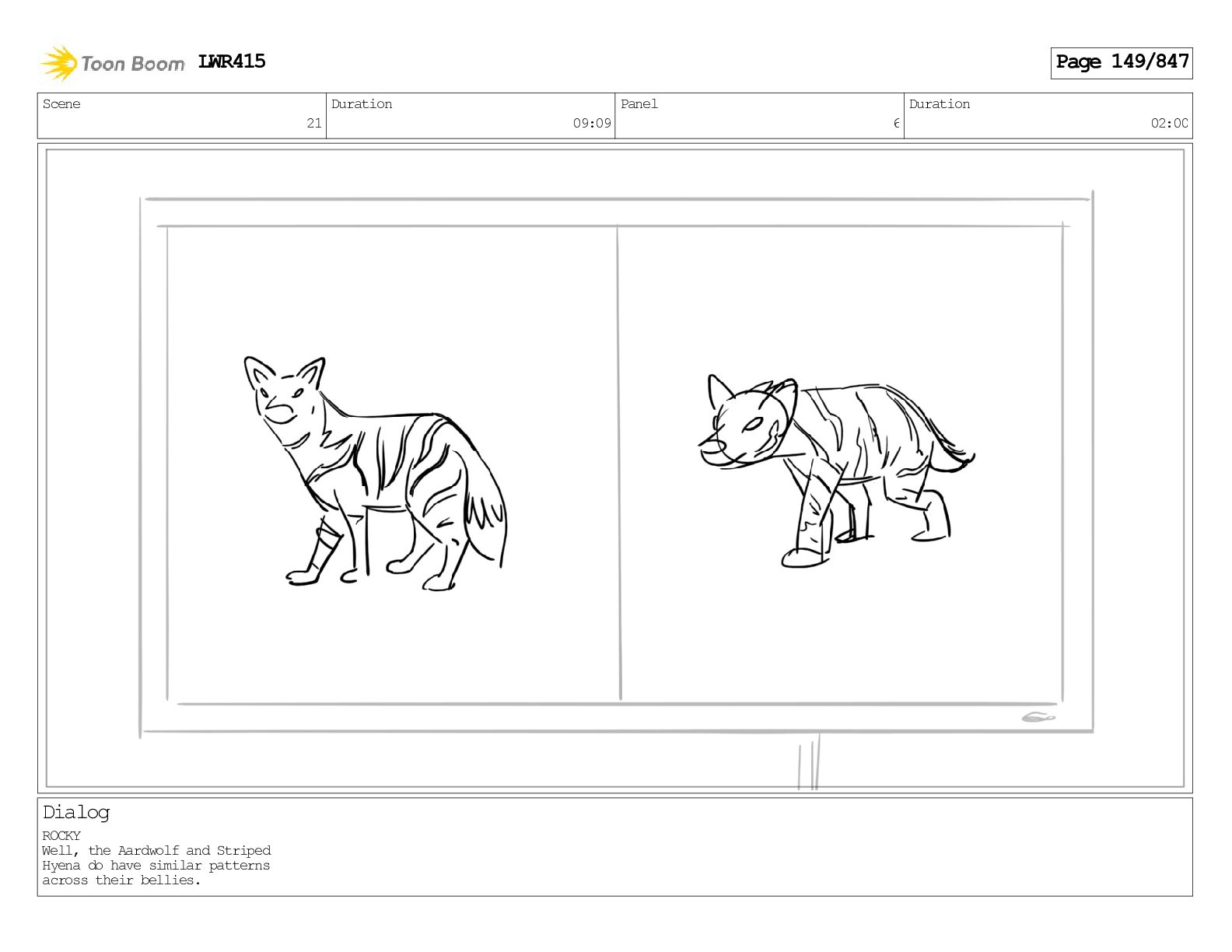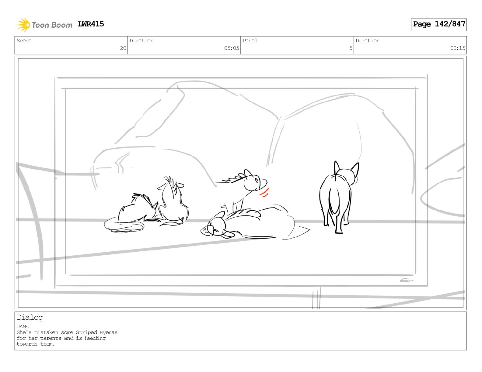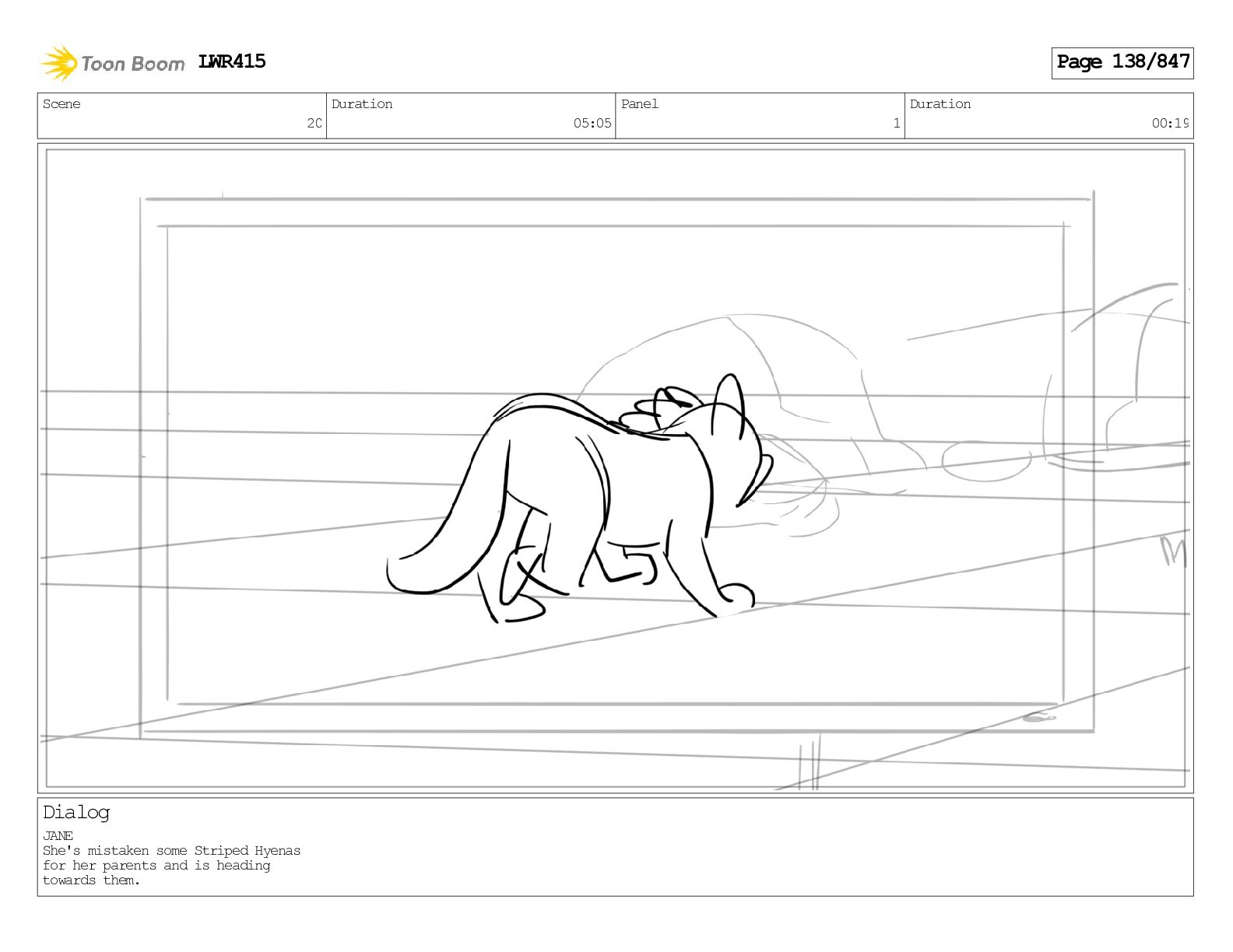 Impressive. An adult Aardwolf can eat up to three hundred thousand termites a night. (a beat) Of course, we can use their favourite food to lure the cub out! LWR415 Page 446/847