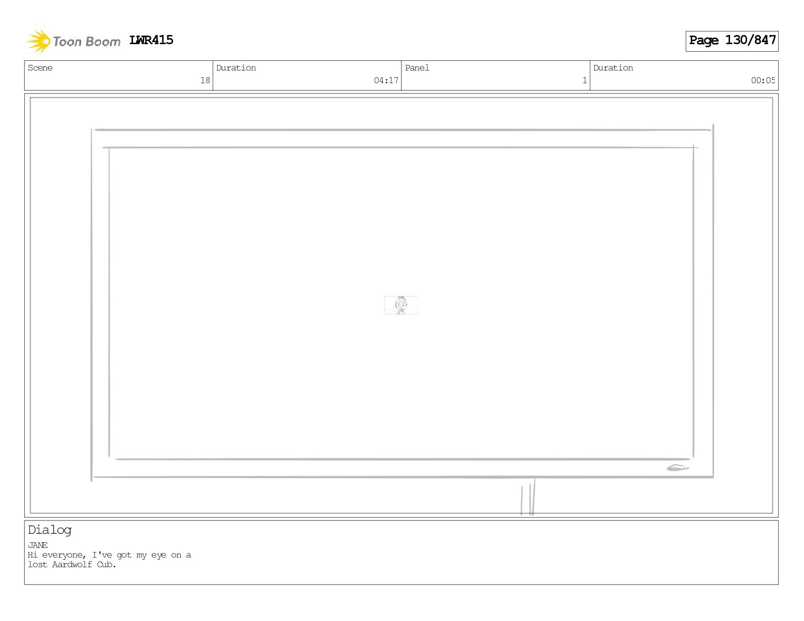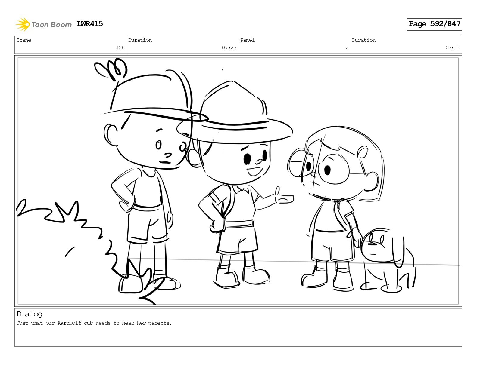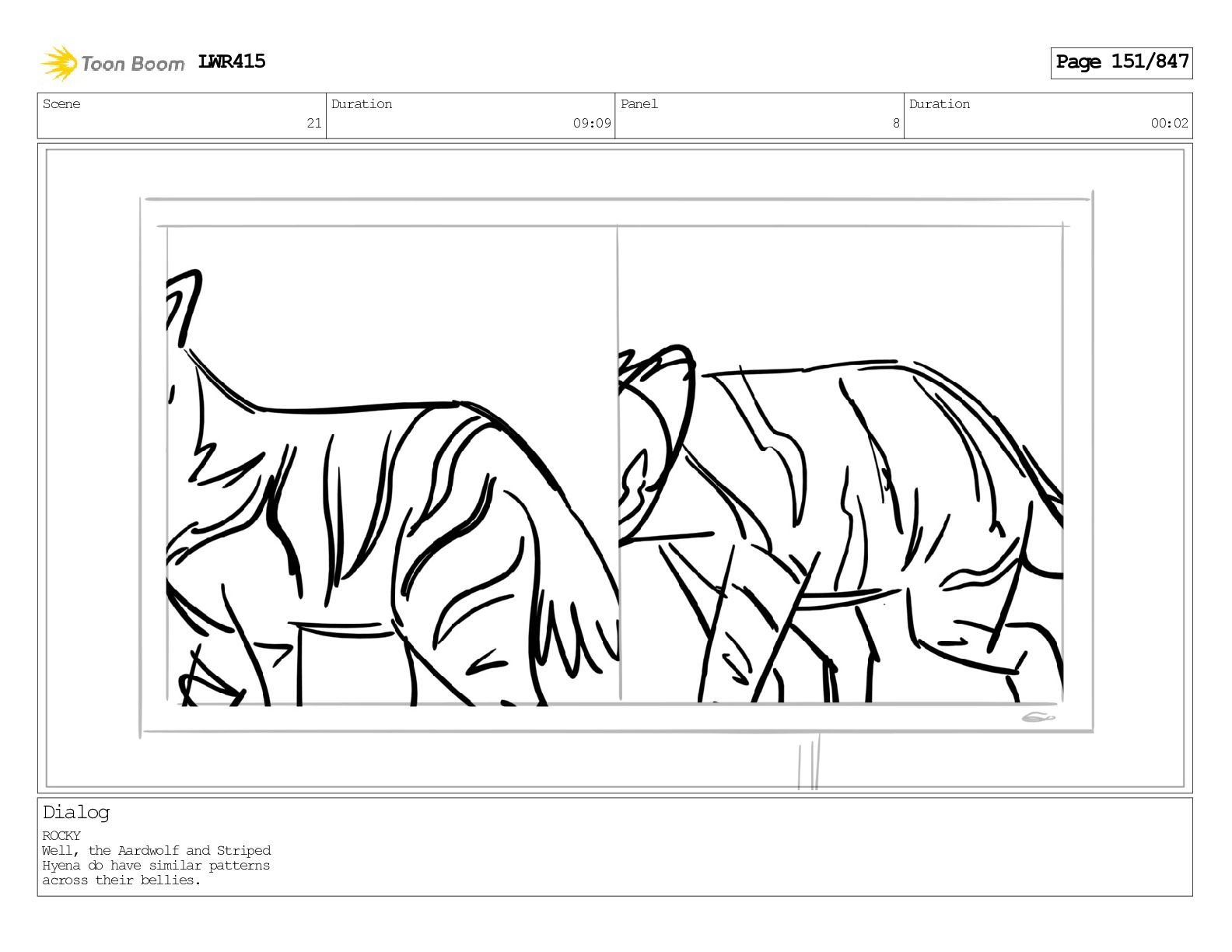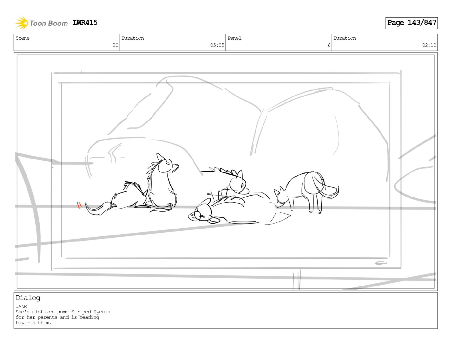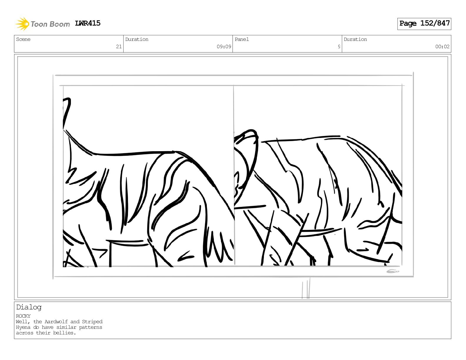 Impressive. An adult Aardwolf can eat up to three hundred thousand termites a night. (a beat) Of course, we can use their favourite food to lure the cub out! LWR415 Page 446/847