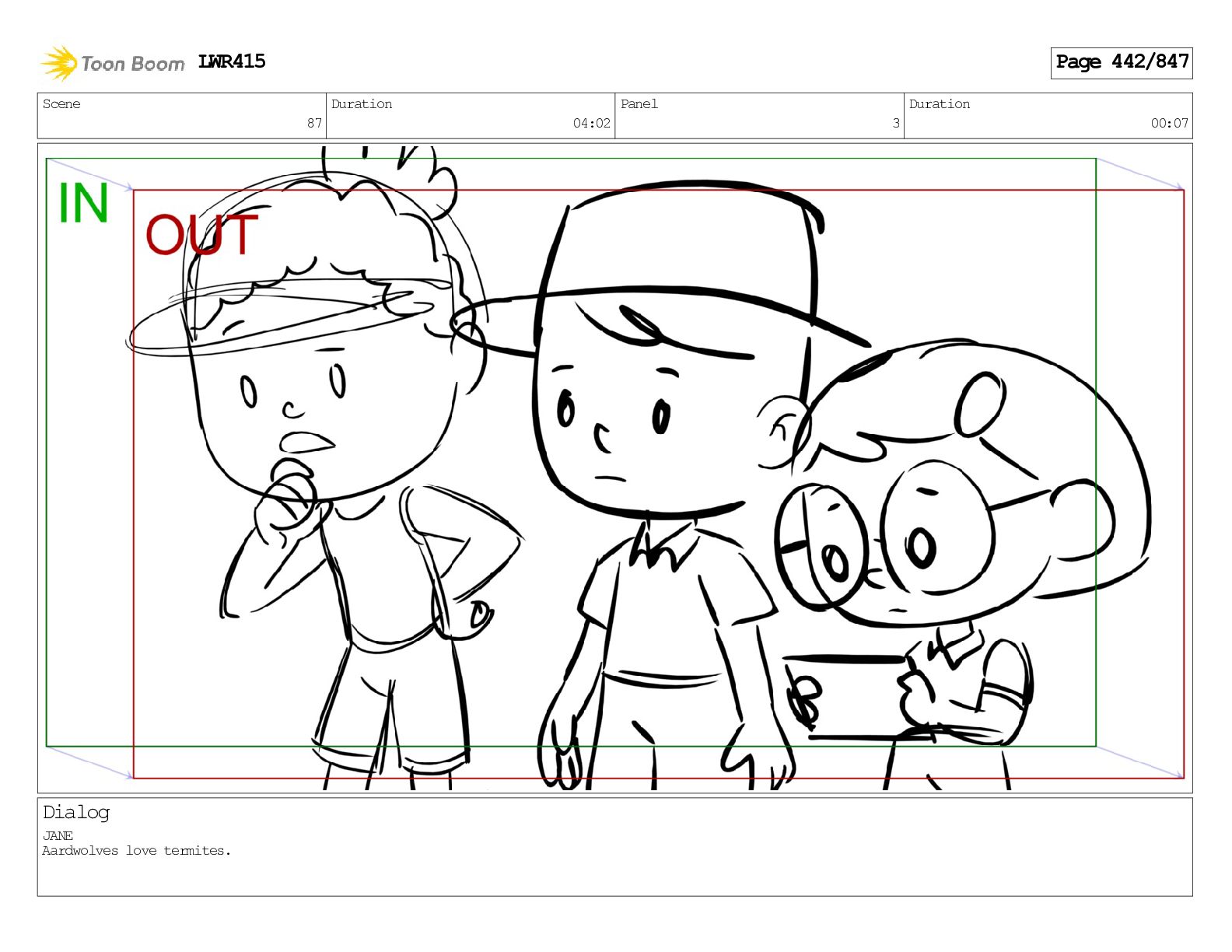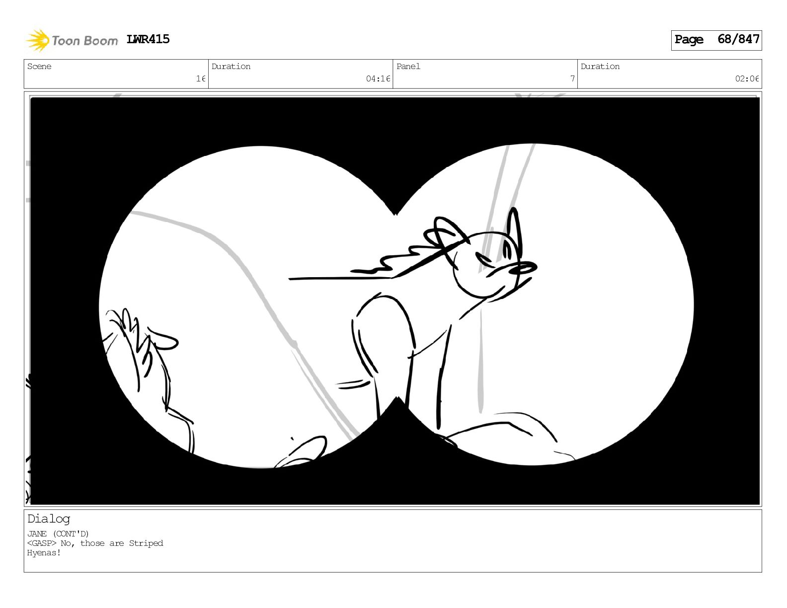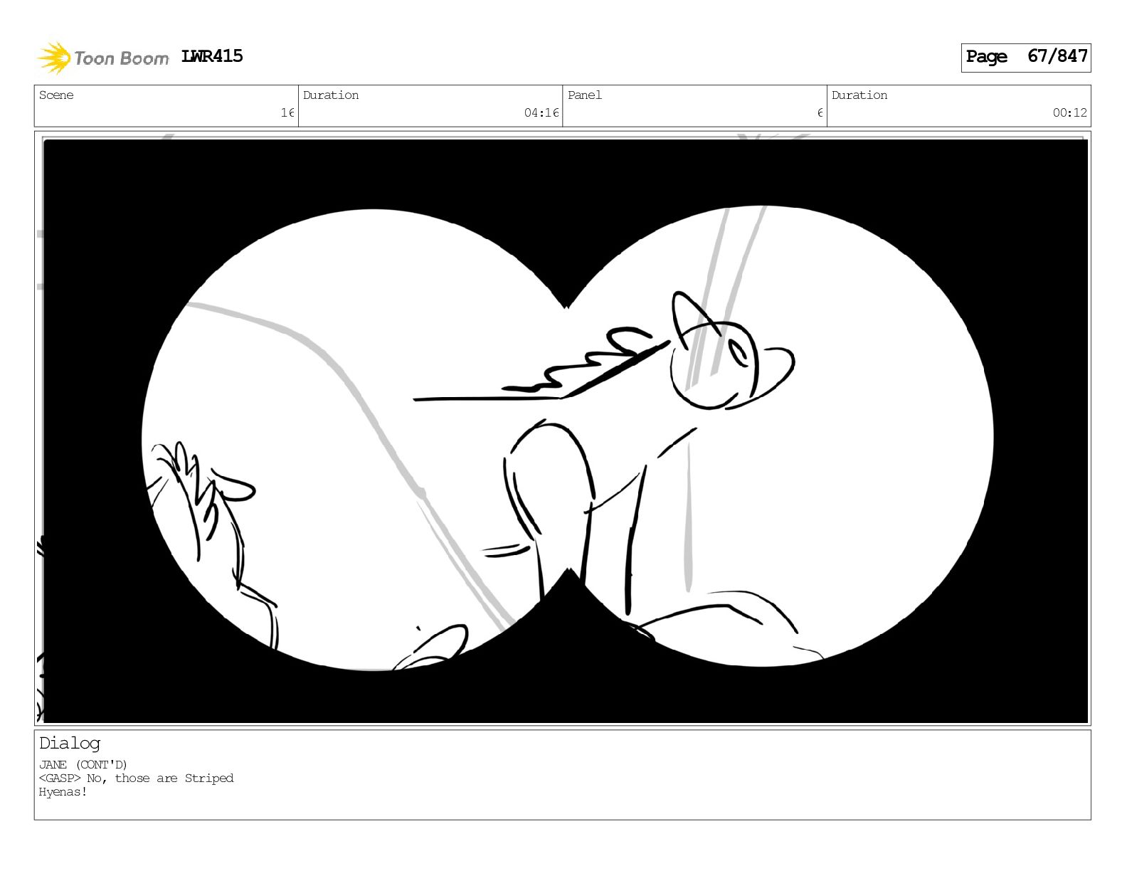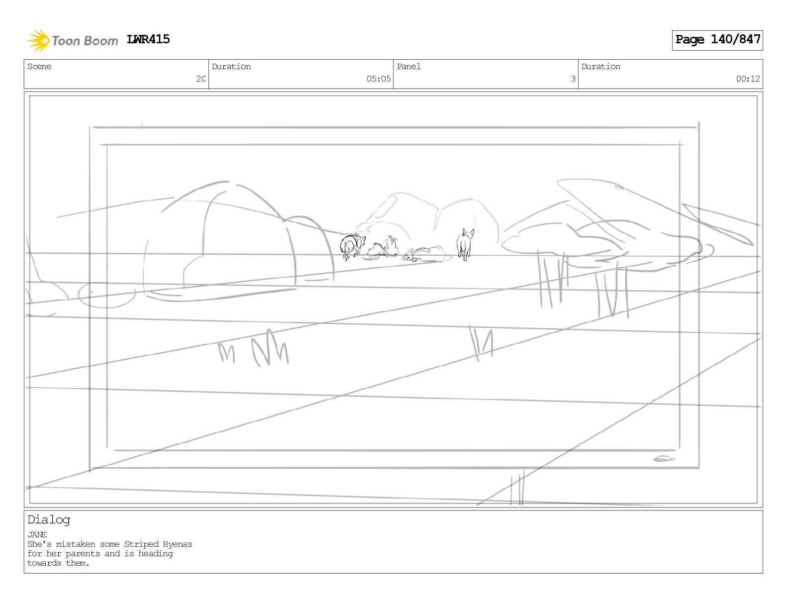 Impressive. An adult Aardwolf can eat up to three hundred thousand termites a night. (a beat) Of course, we can use their favourite food to lure the cub out! LWR415 Page 446/847