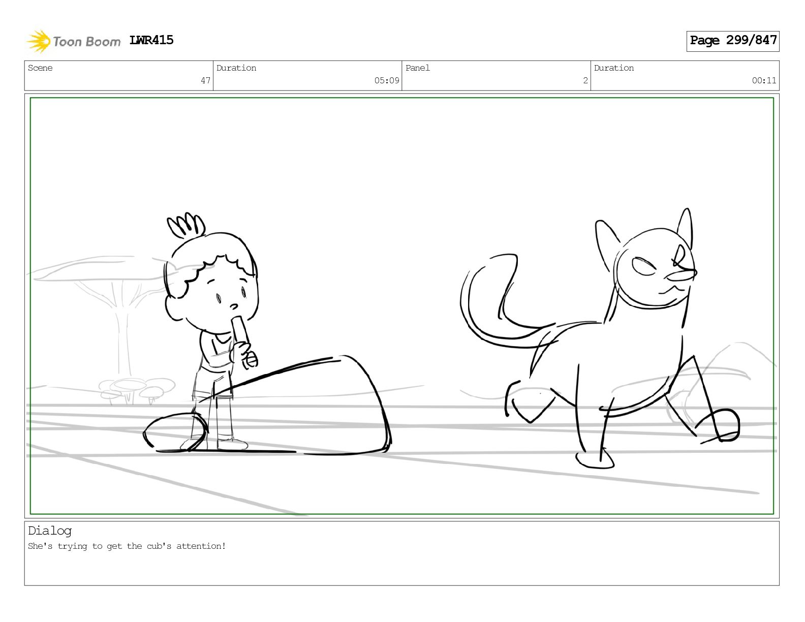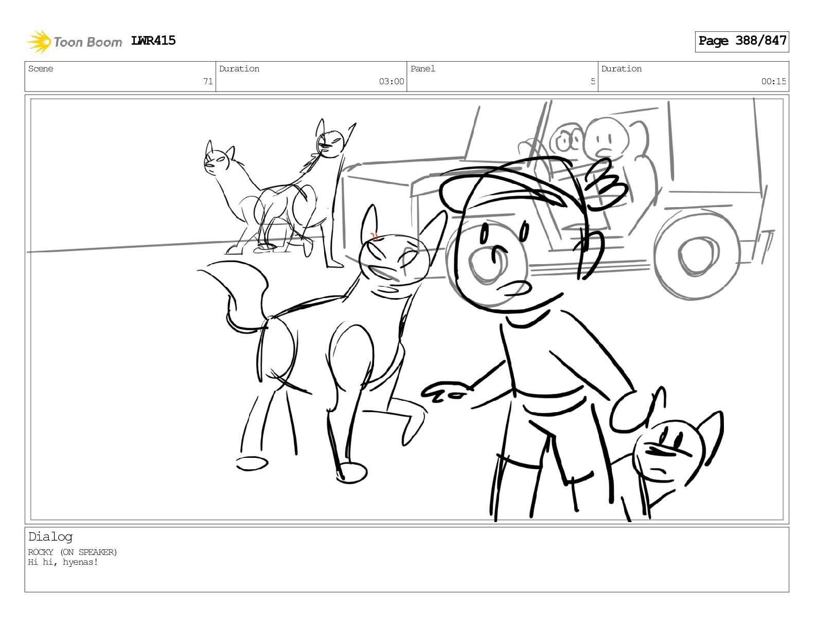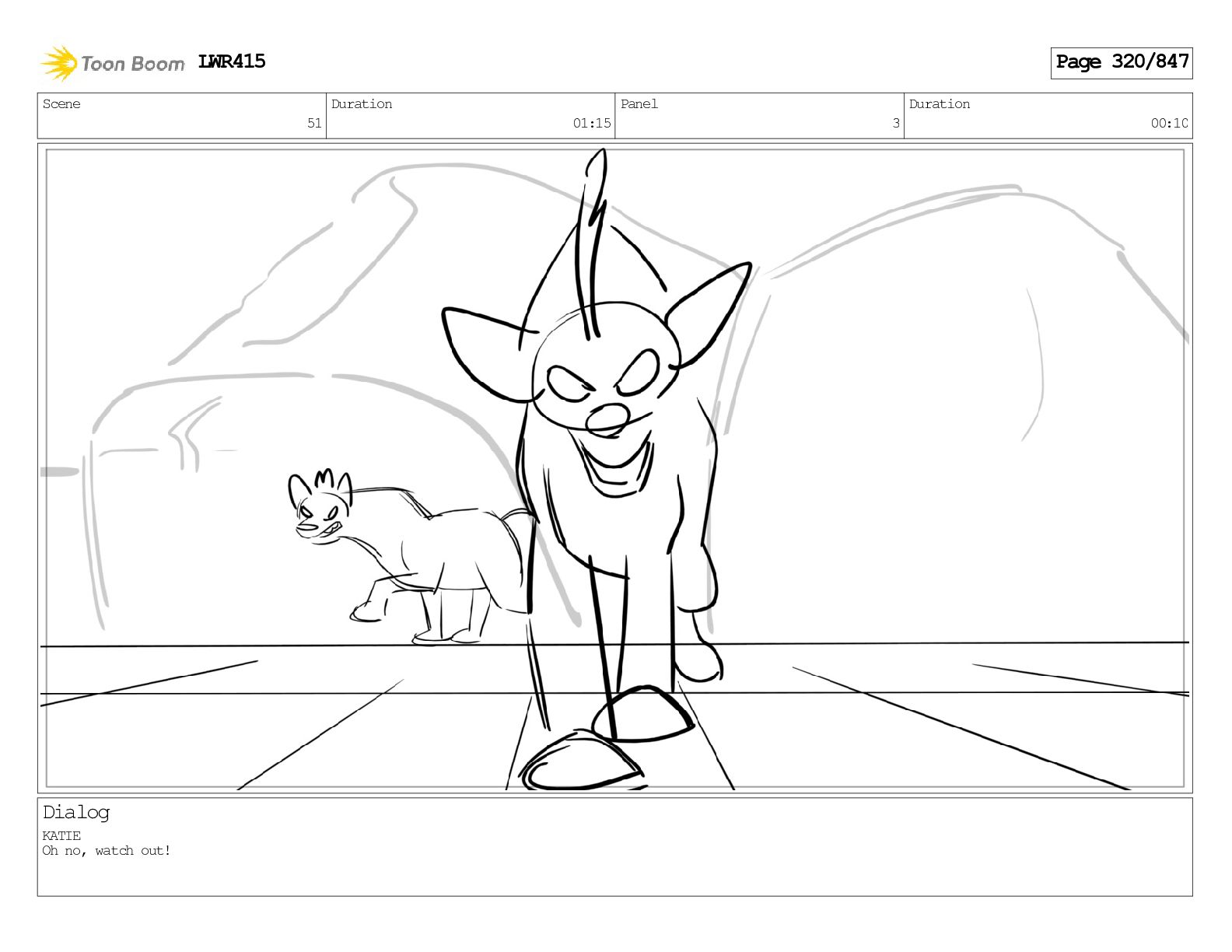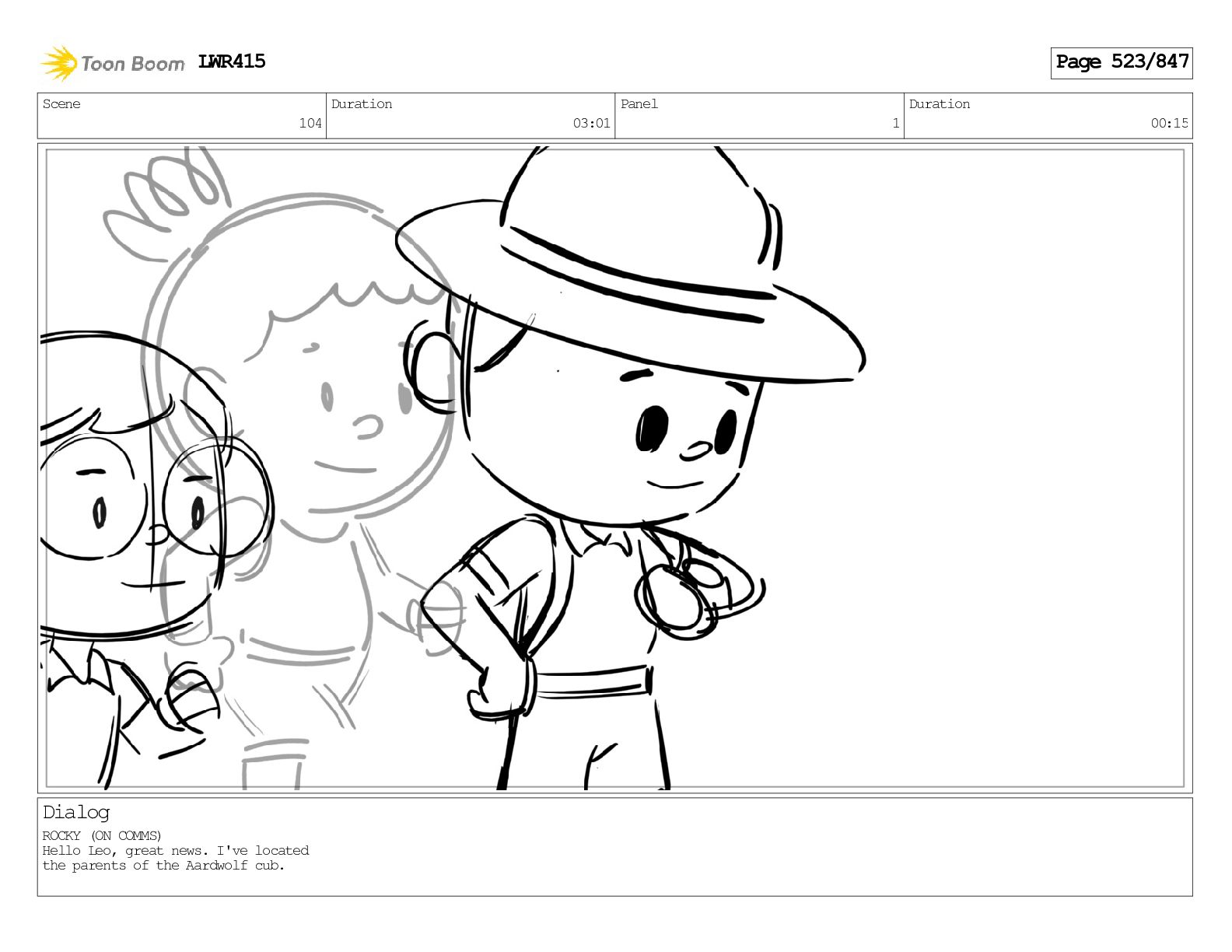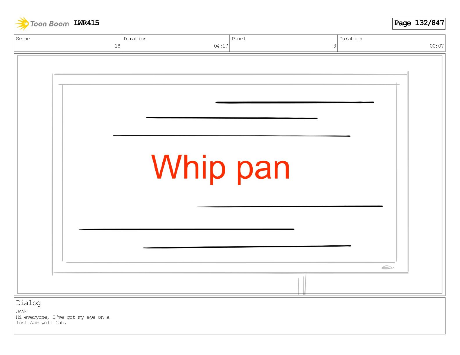 Impressive. An adult Aardwolf can eat up to three hundred thousand termites a night. (a beat) Of course, we can use their favourite food to lure the cub out! LWR415 Page 446/847