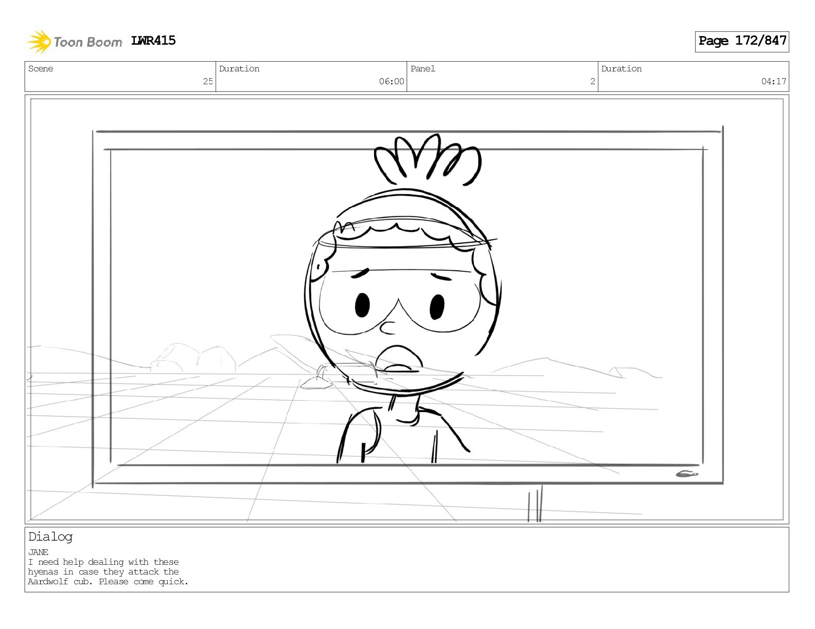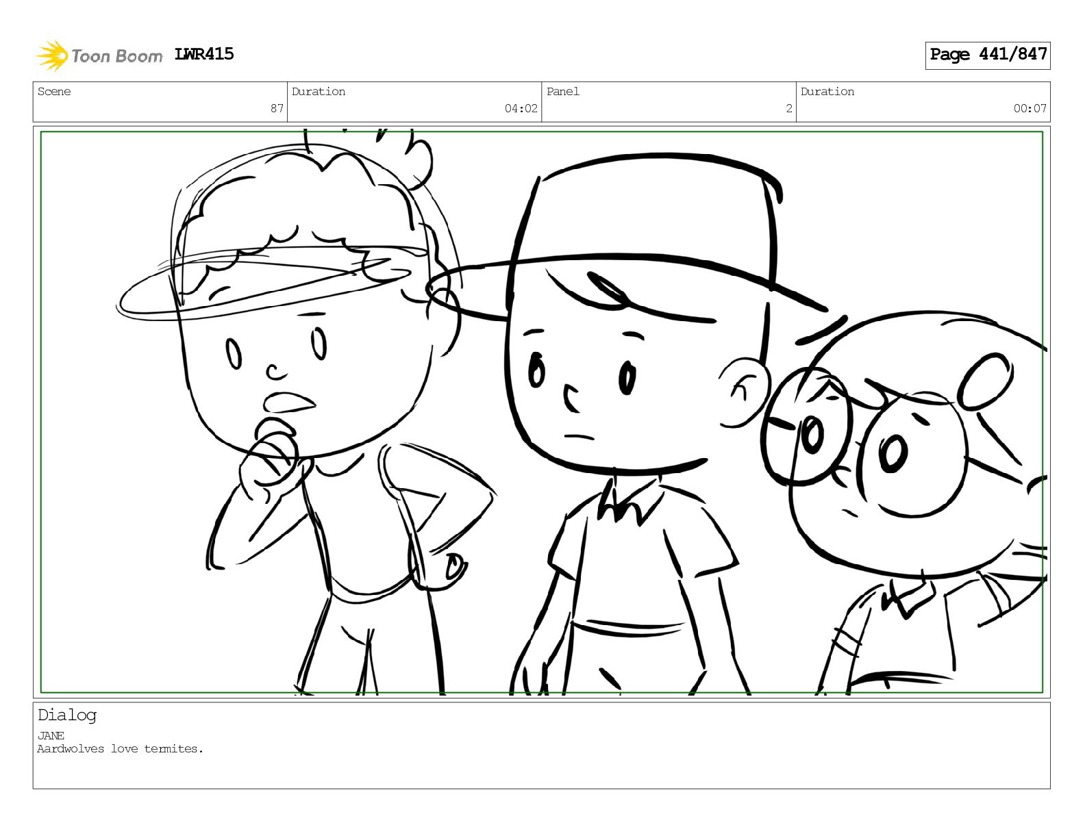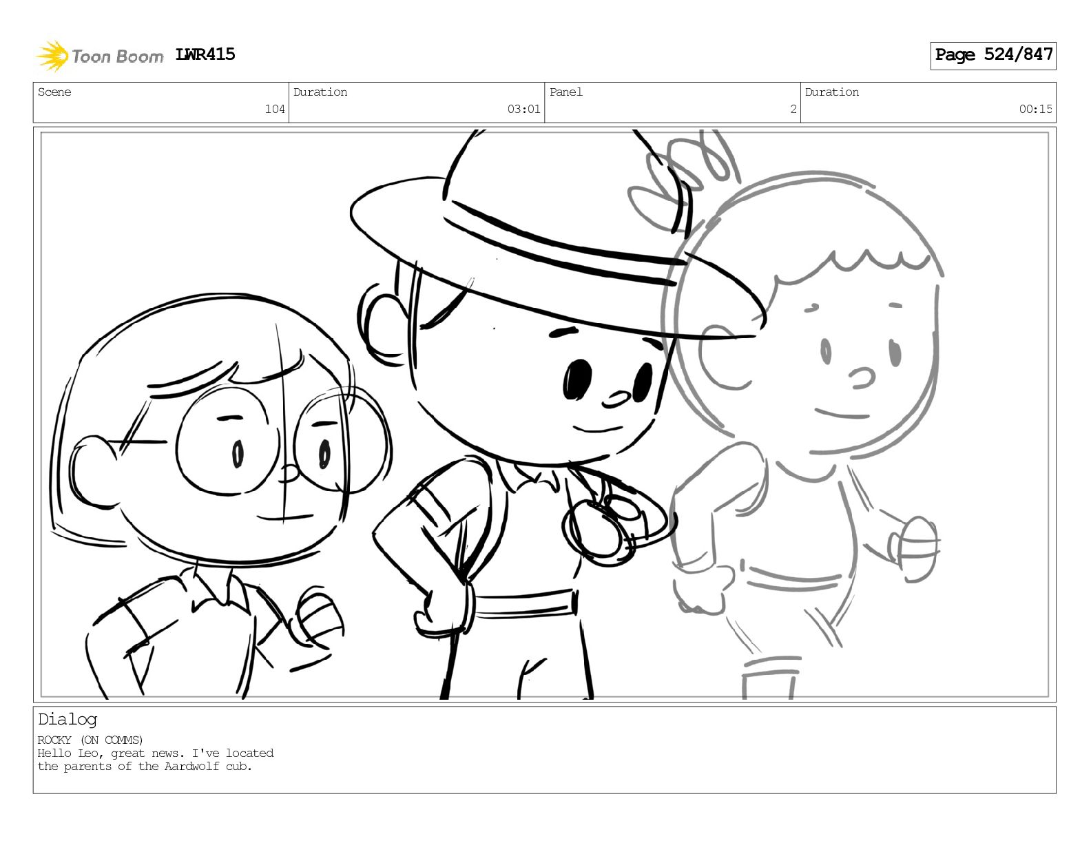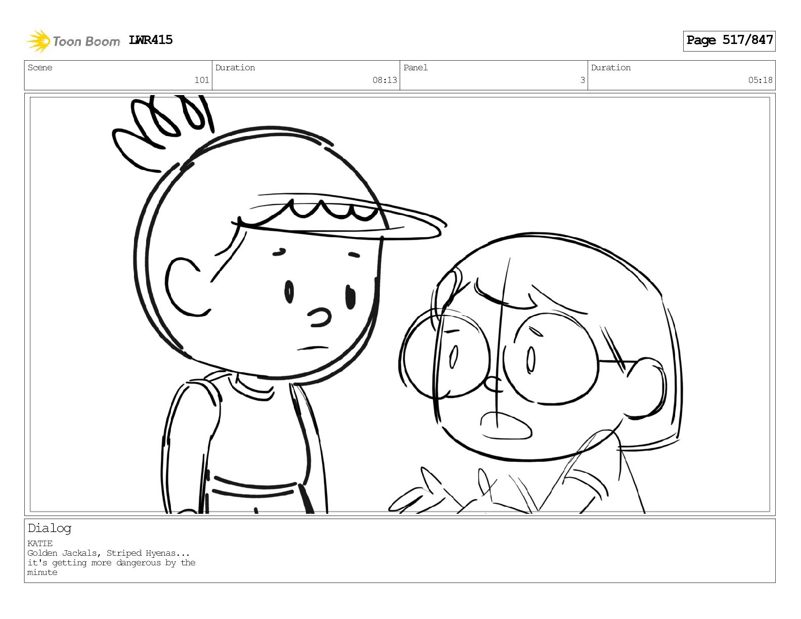Impressive. An adult Aardwolf can eat up to three hundred thousand termites a night. (a beat) Of course, we can use their favourite food to lure the cub out! LWR415 Page 446/847