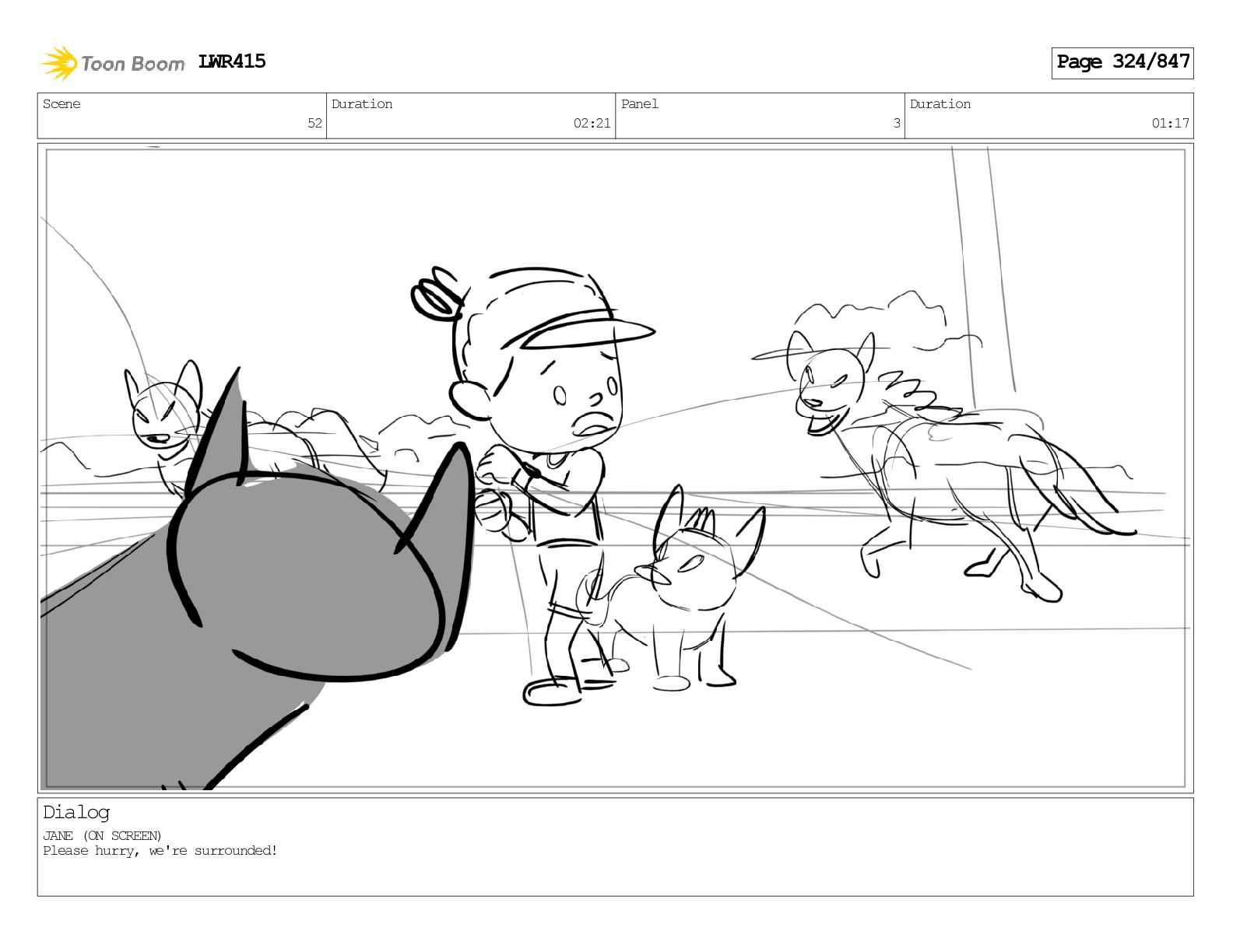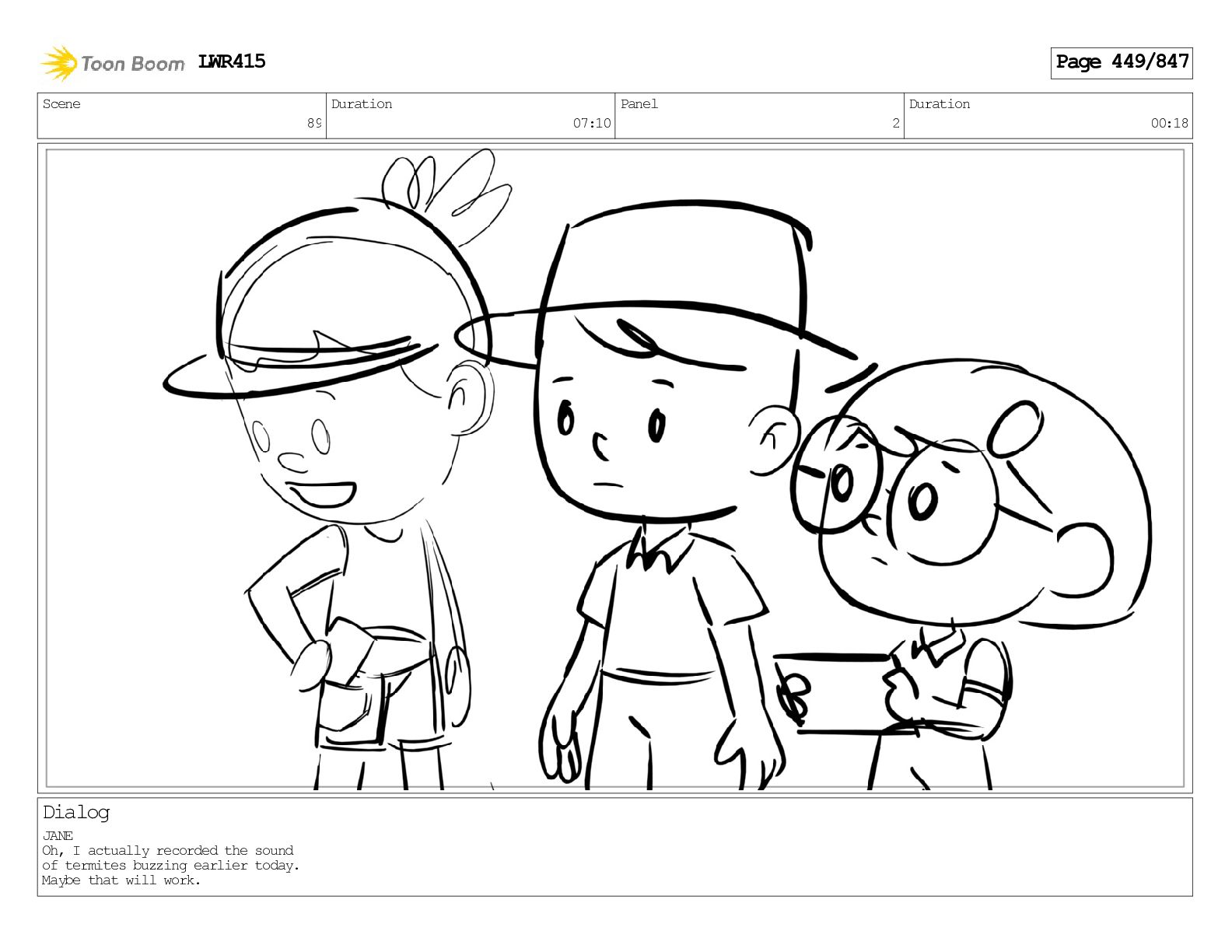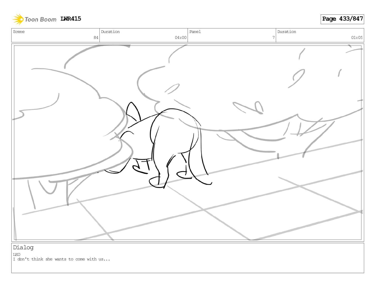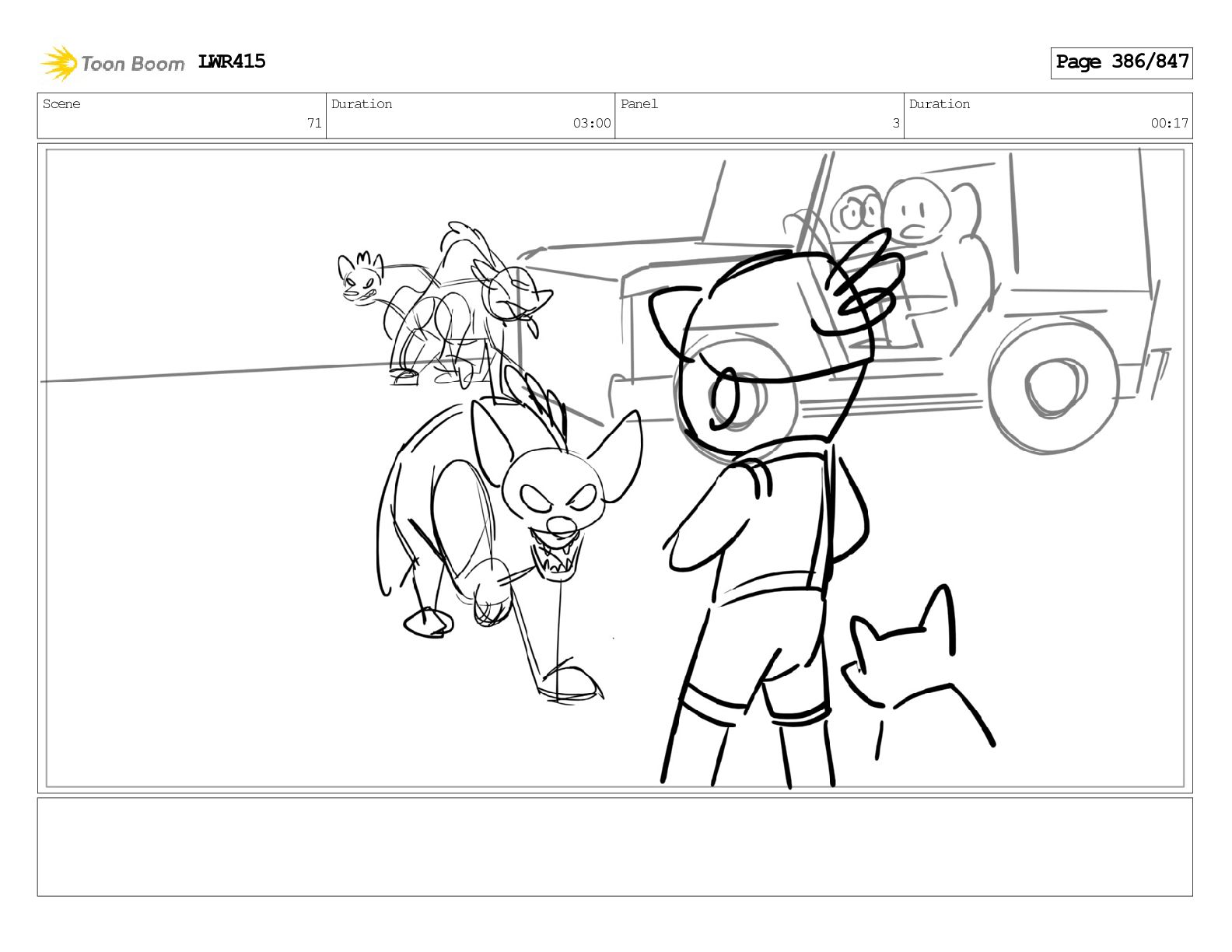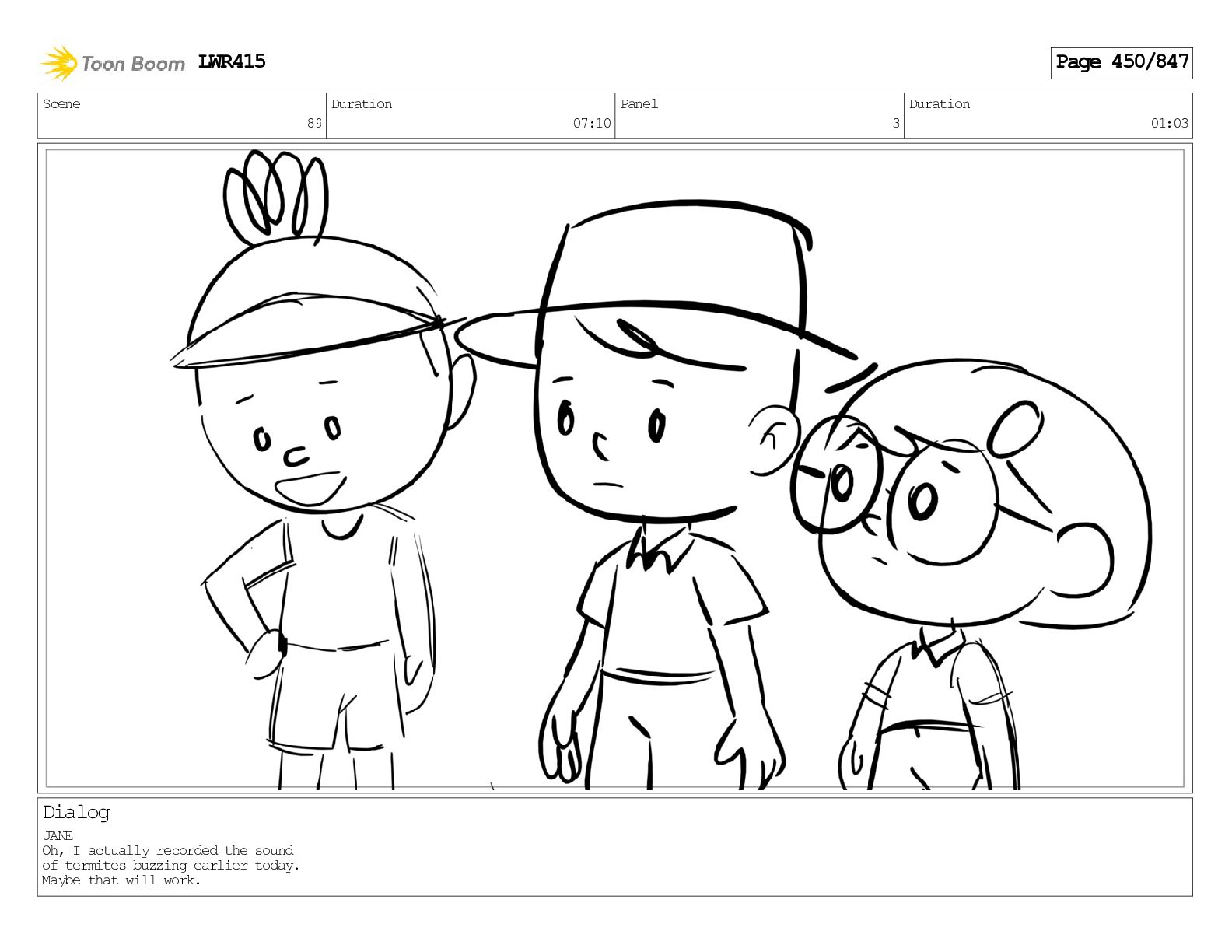 Impressive. An adult Aardwolf can eat up to three hundred thousand termites a night. (a beat) Of course, we can use their favourite food to lure the cub out! LWR415 Page 446/847