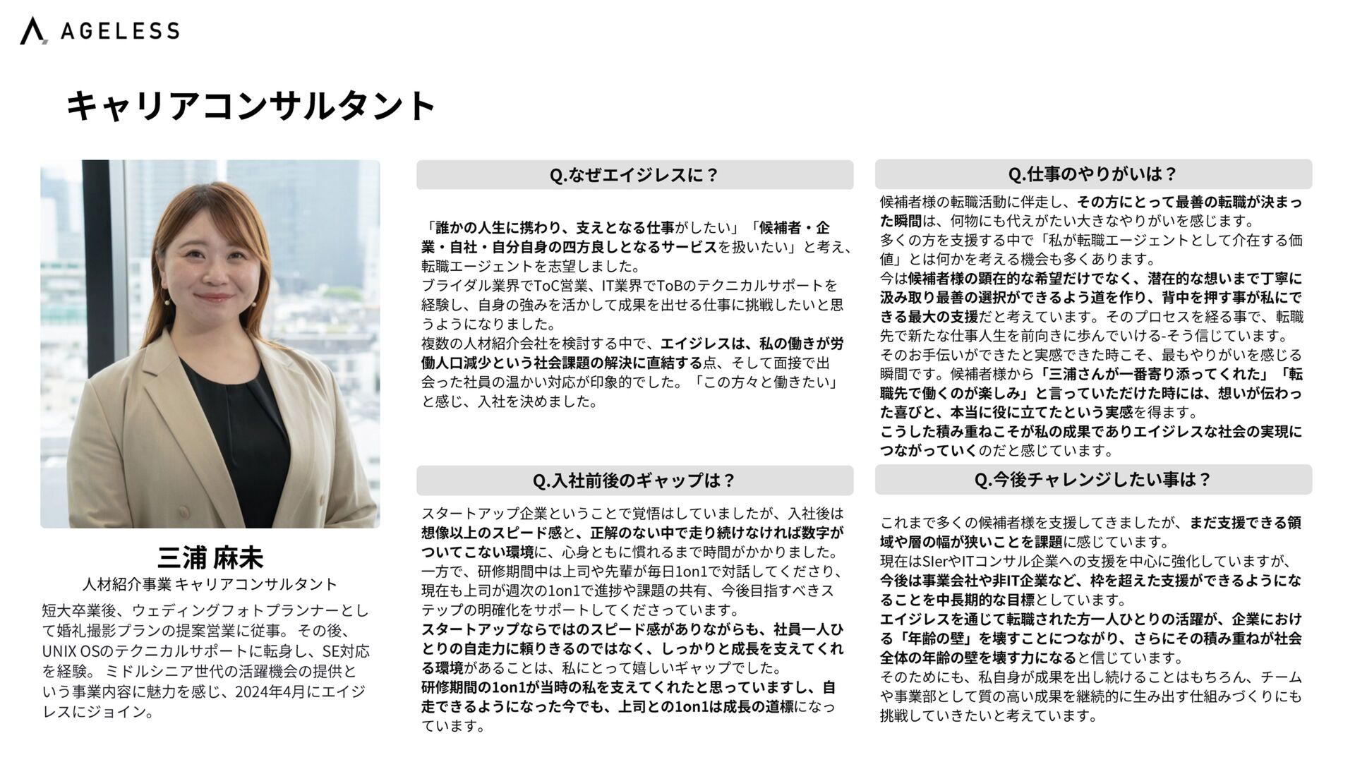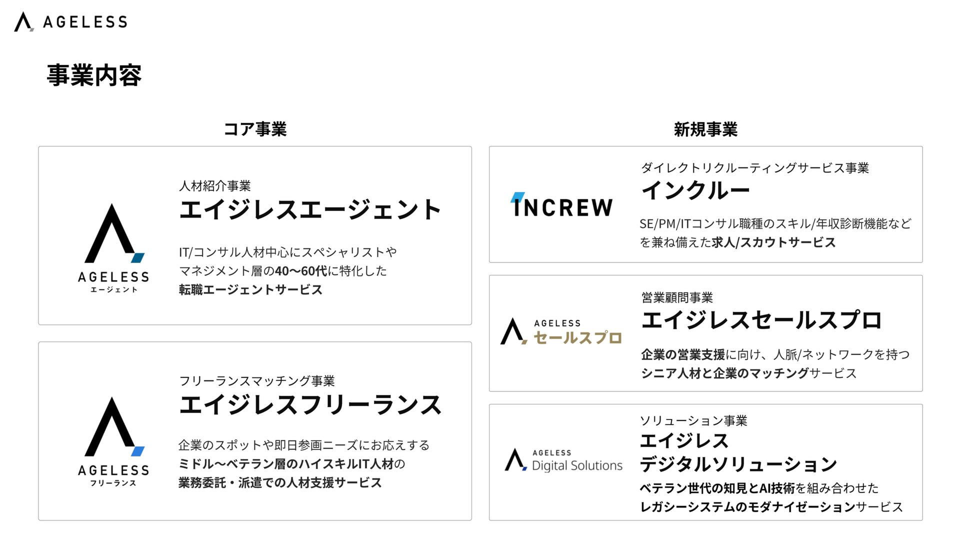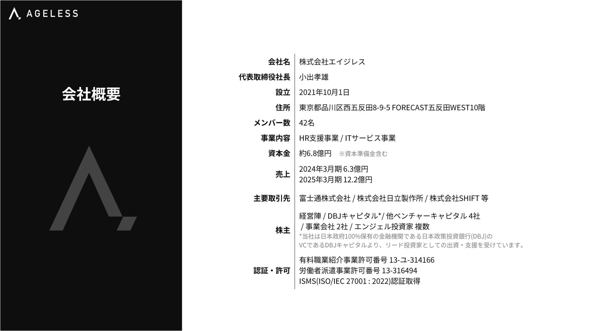エイジレスを知っていただいた方のための会社紹介資料です。