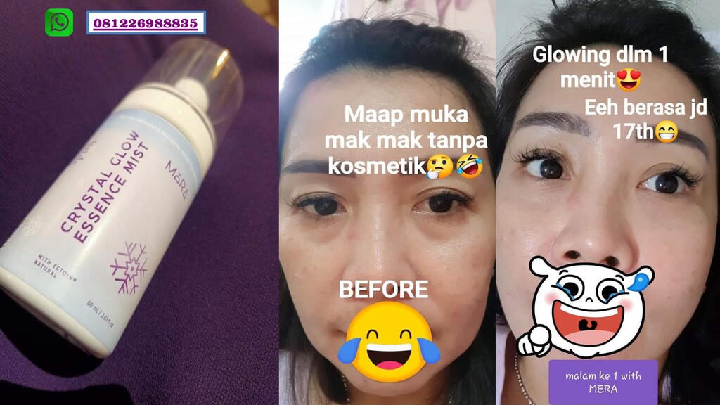 Crystal glow essence mist di formulasikan khusus dengan kombinasi bahan bahan aktif pilihan yang memberikan enam kebaikan manfaat *HEXA EFFECT* untuk perawatan harian kulit mu yaitu :