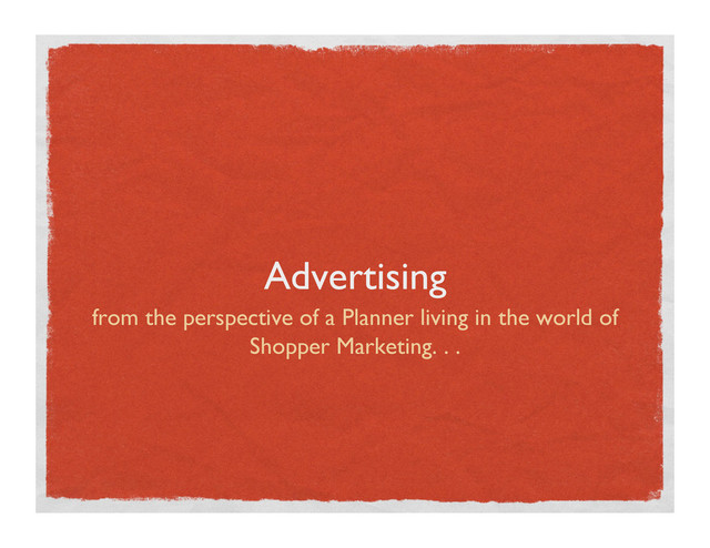 I started out as an Anthropologist. Looking at cultures, trying to decipher what their rituals meant to the people enacting them. Switching over to UX meant reversing that process, creating rituals to help people better explain and navigate through their world. Advertising, and particularly Shopper Marketing, is a space where these efforts are overt, providing an excellent object lesson on any effort to create a new product, a new habit, a new ritual. Presented at DePaul University, October 2010.