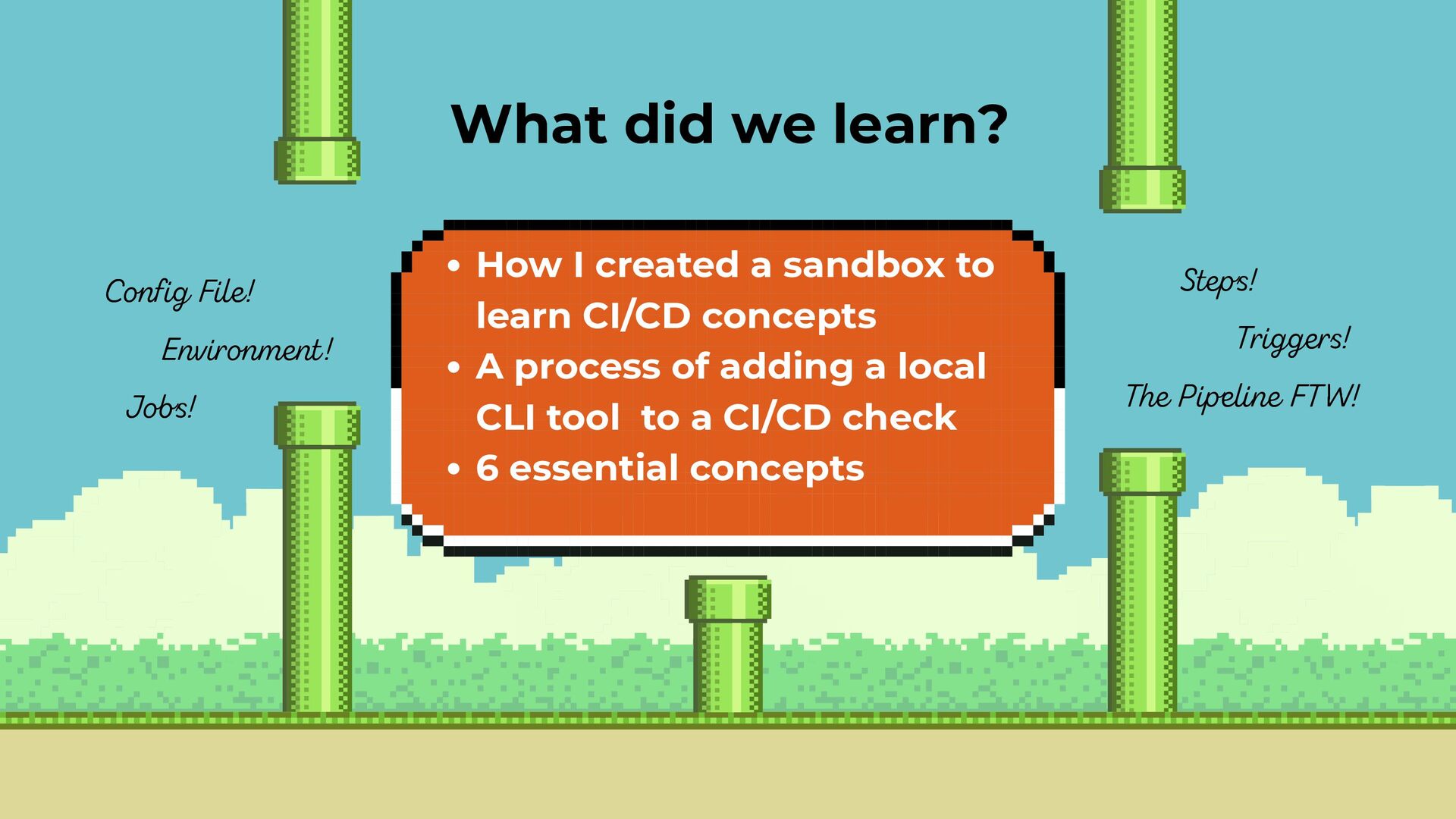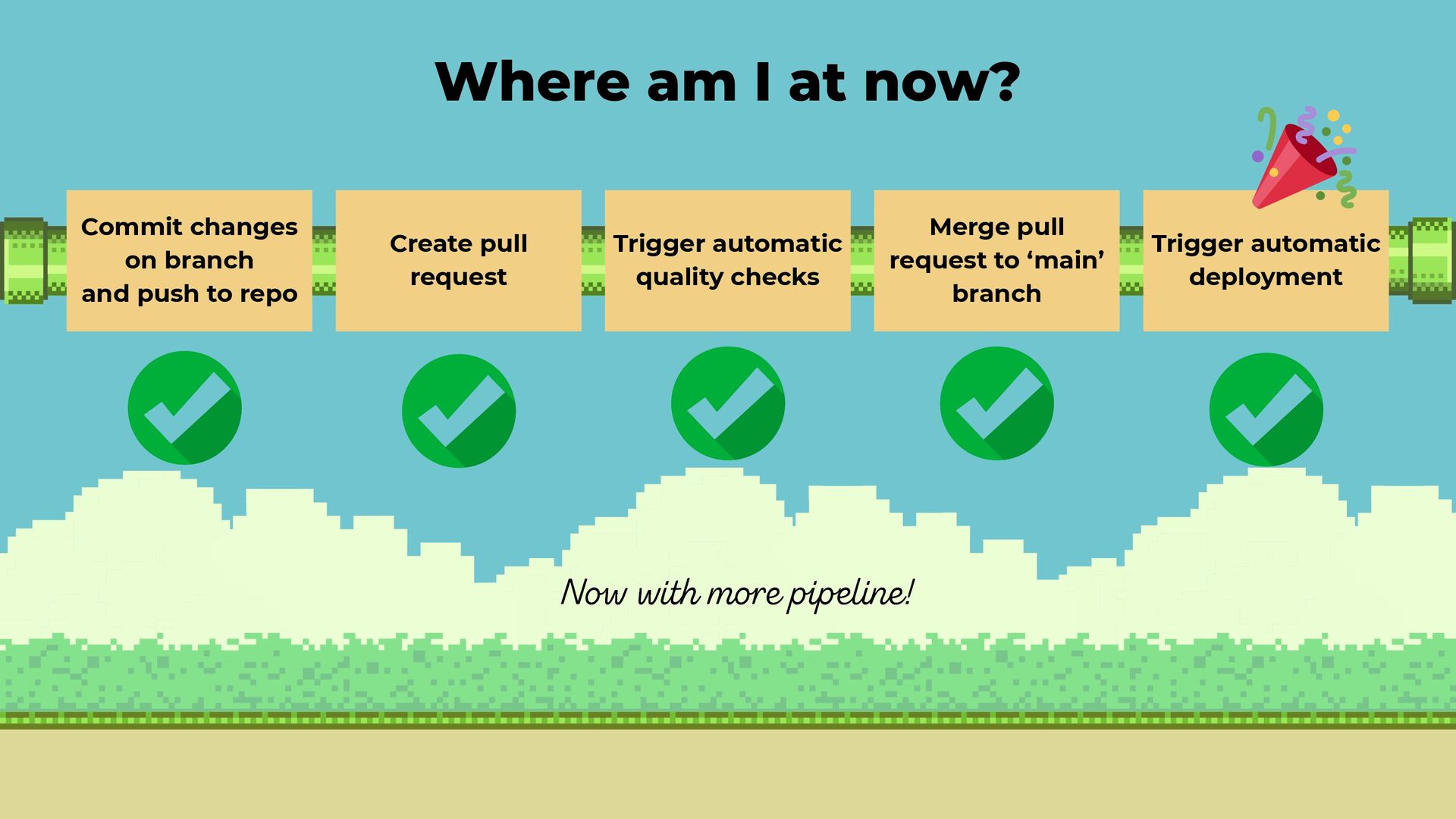 - Confidence to continue exploring DevOps through small, safe, meaningful steps