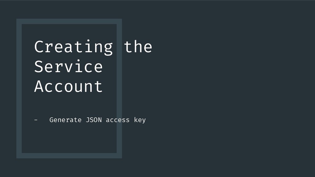 Creating the Service Account - Generate JSON access key