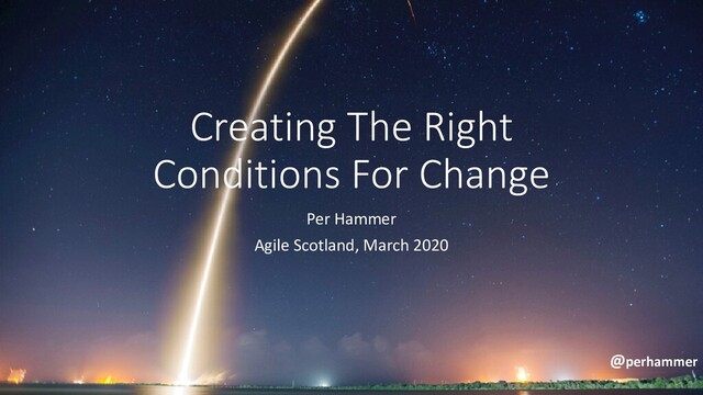 In this talk, Per will introduce some key concepts and techniques used at J.P. Morgan to create a grass-roots change program by creating the right conditions for staff to engage and participate in a wide range of communities of practice, and aligning those to strategic change initiatives.