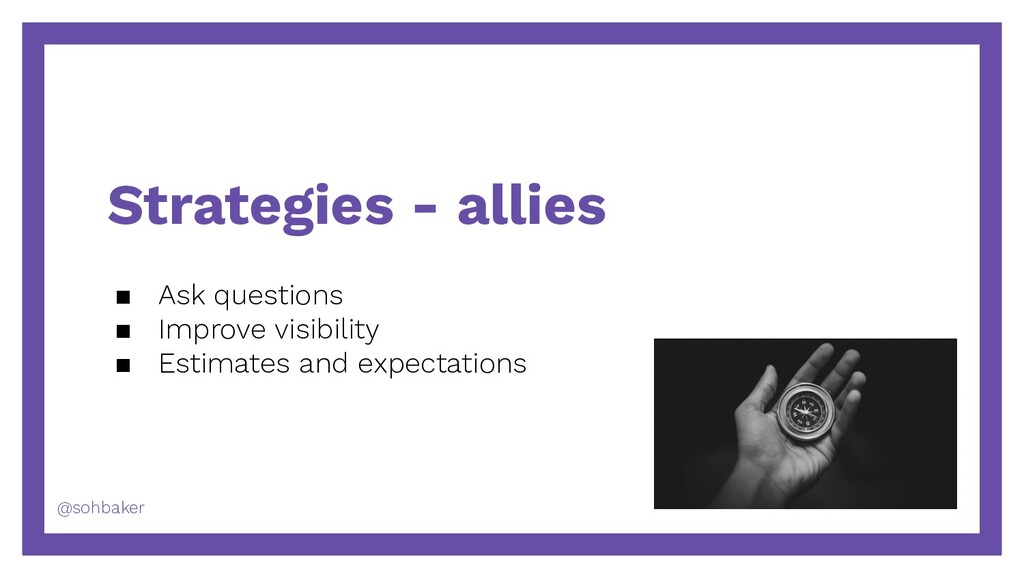 Strategies - allies ▪ Ask questions ▪ Improve visibility ▪