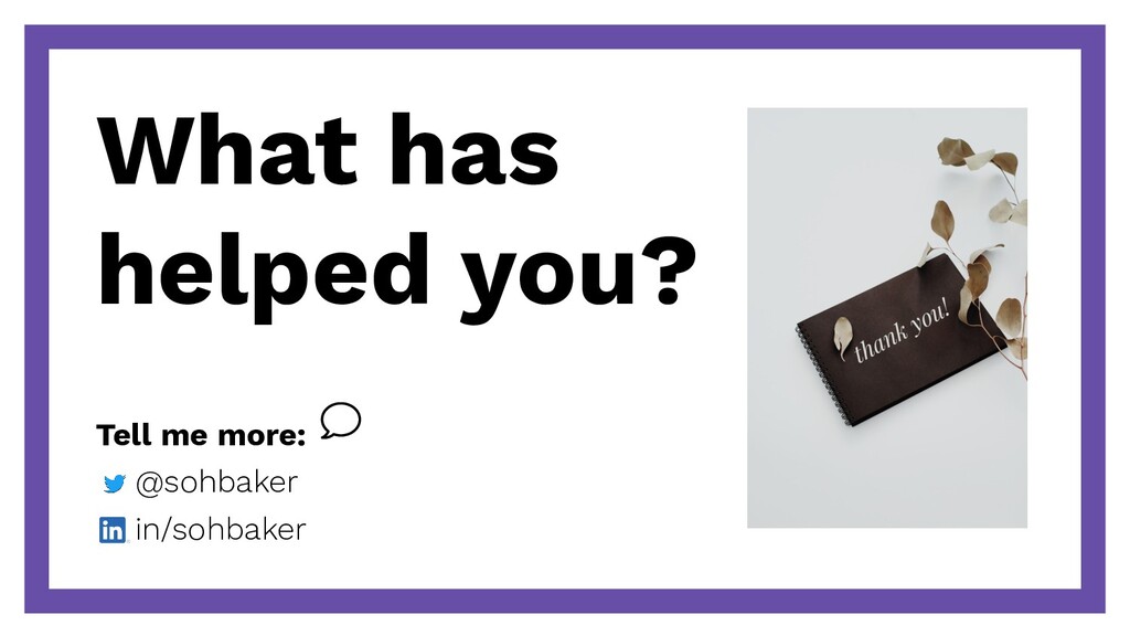 What has helped you? Tell me more: @sohbaker in/sohbaker