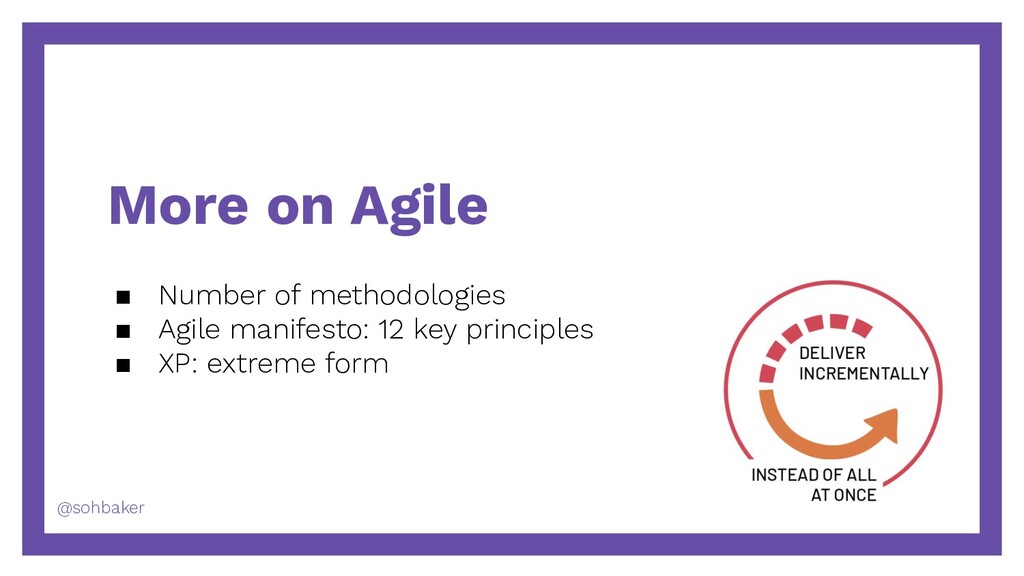 More on Agile ▪ Number of methodologies ▪ Agile manifesto:
