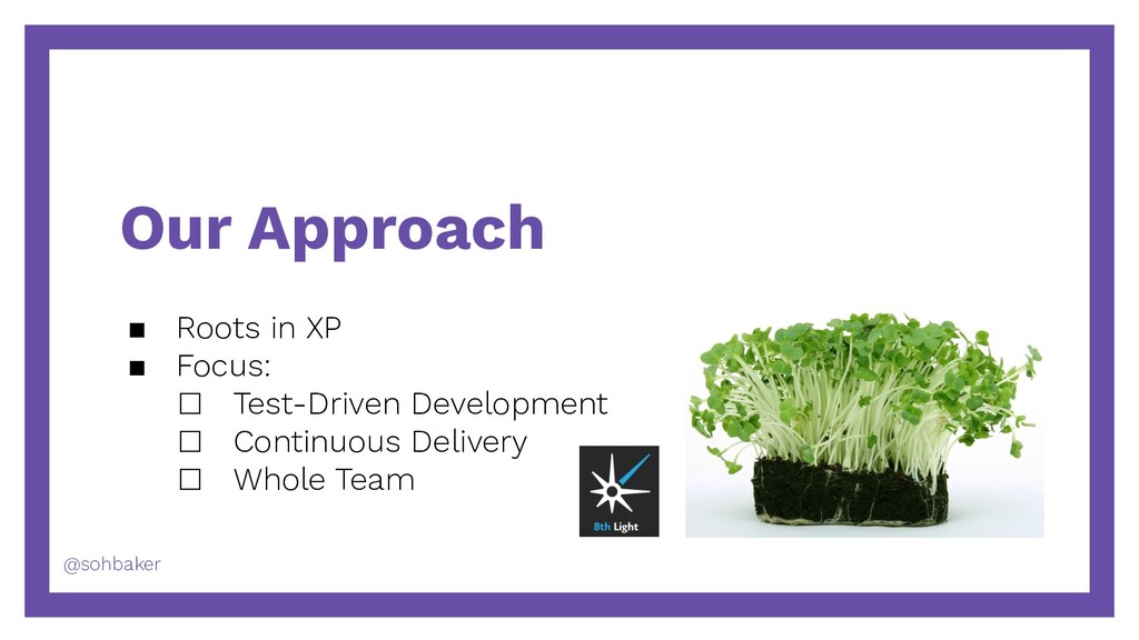 Our Approach ▪ Roots in XP ▪ Focus: □ Test-Driven
