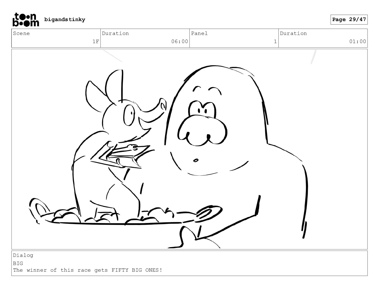 Scene 1F Duration 06:00 Panel 6 Duration 01:00 Dialog BIG