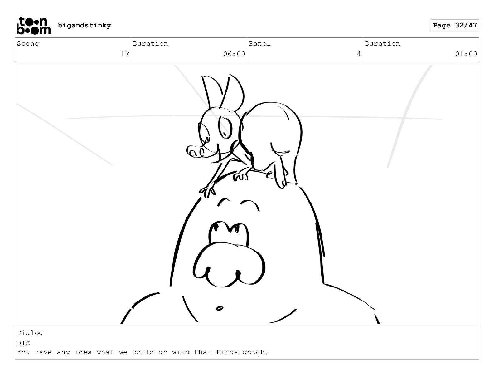 Scene 1F Duration 06:00 Panel 4 Duration 01:00 Dialog BIG