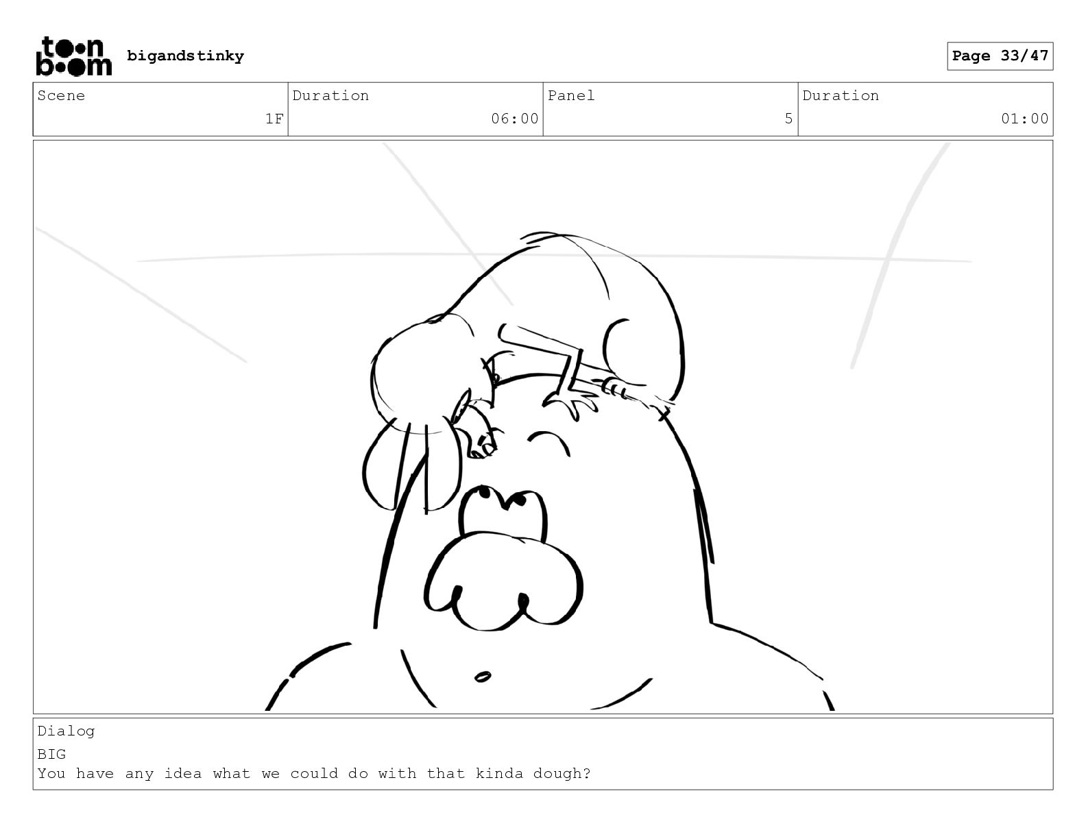 Scene 1F Duration 06:00 Panel 5 Duration 01:00 Dialog BIG