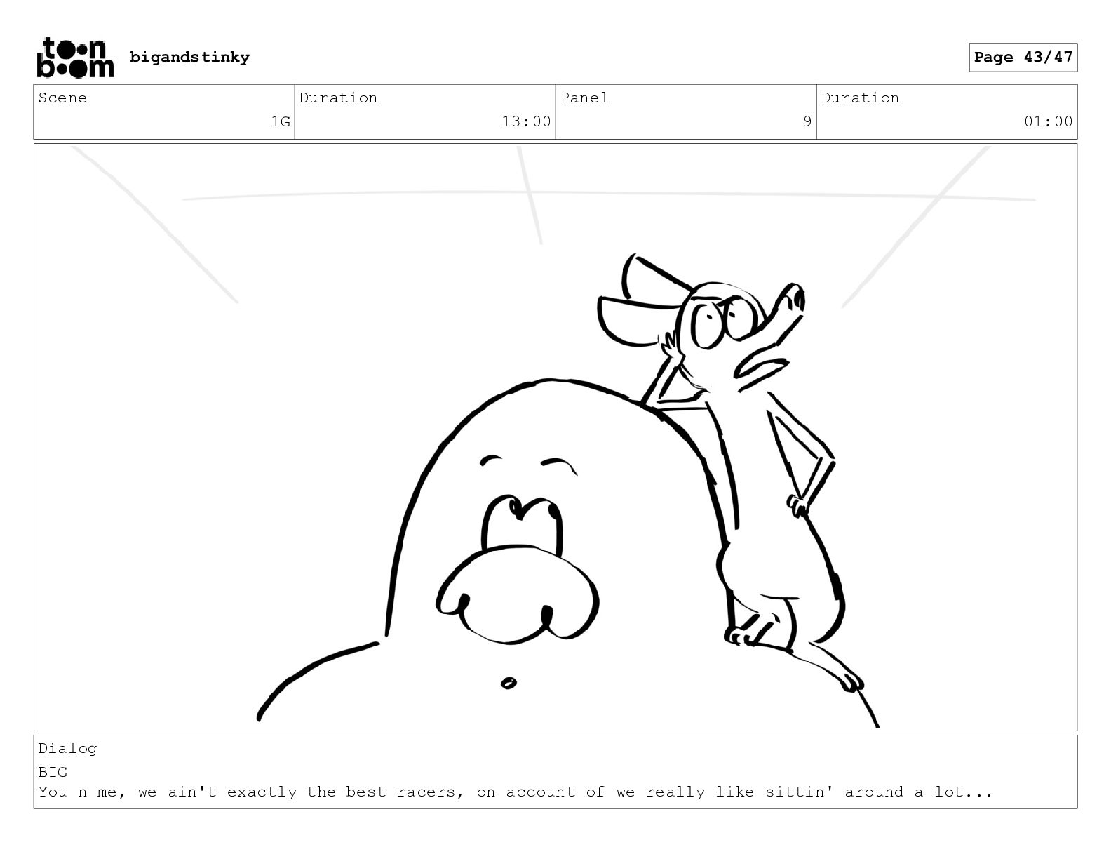 Scene 1G Duration 13:00 Panel 6 Duration 01:00 Dialog BIG